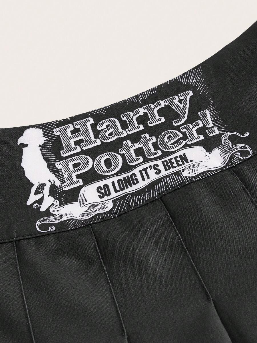 Harry Potter | ROMWE Letter & Moon Graphic Pleated Skirt