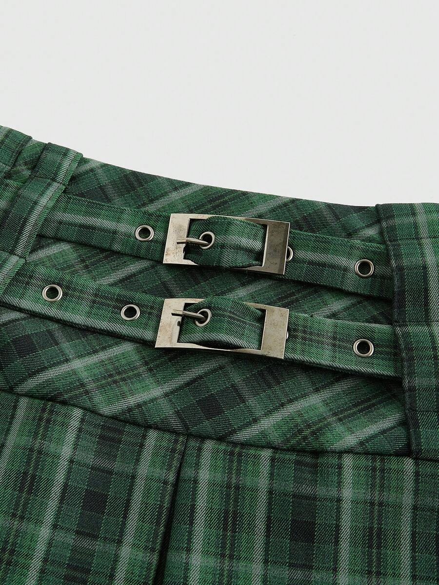 Harry Potter | ROMWE Retro College Badge Print Pleated Plaid Women Skirt, School