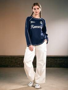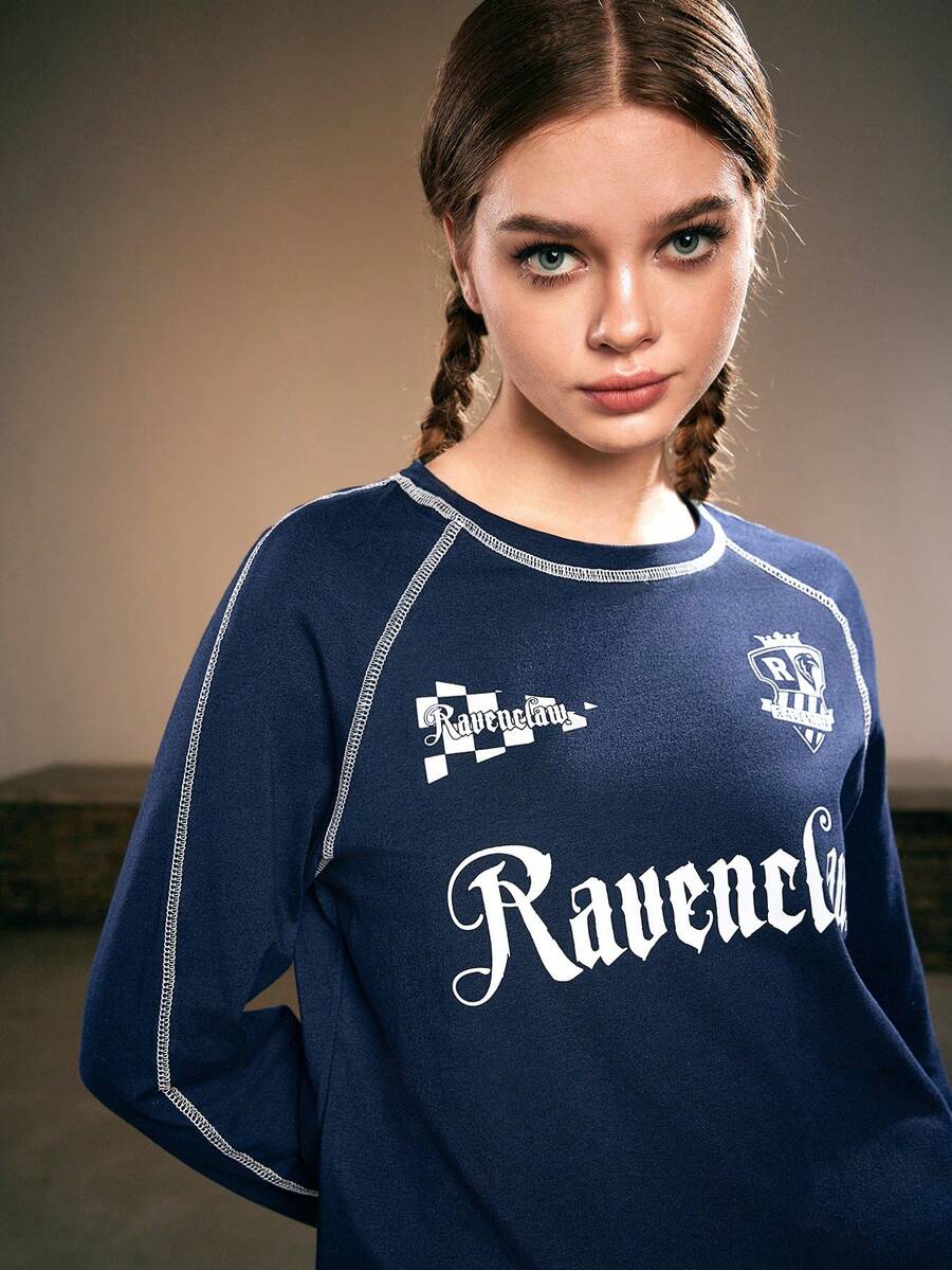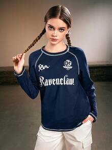 Harry Potter | ROMWE Women's Letter Print Raglan Sleeve stitched T-shirt