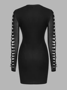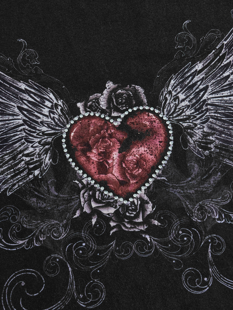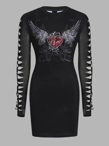 Heart & Wings Print Cut Out Sleeve Bodycon Dress