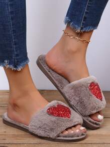 Heart Graphic Fluffy Slippers
