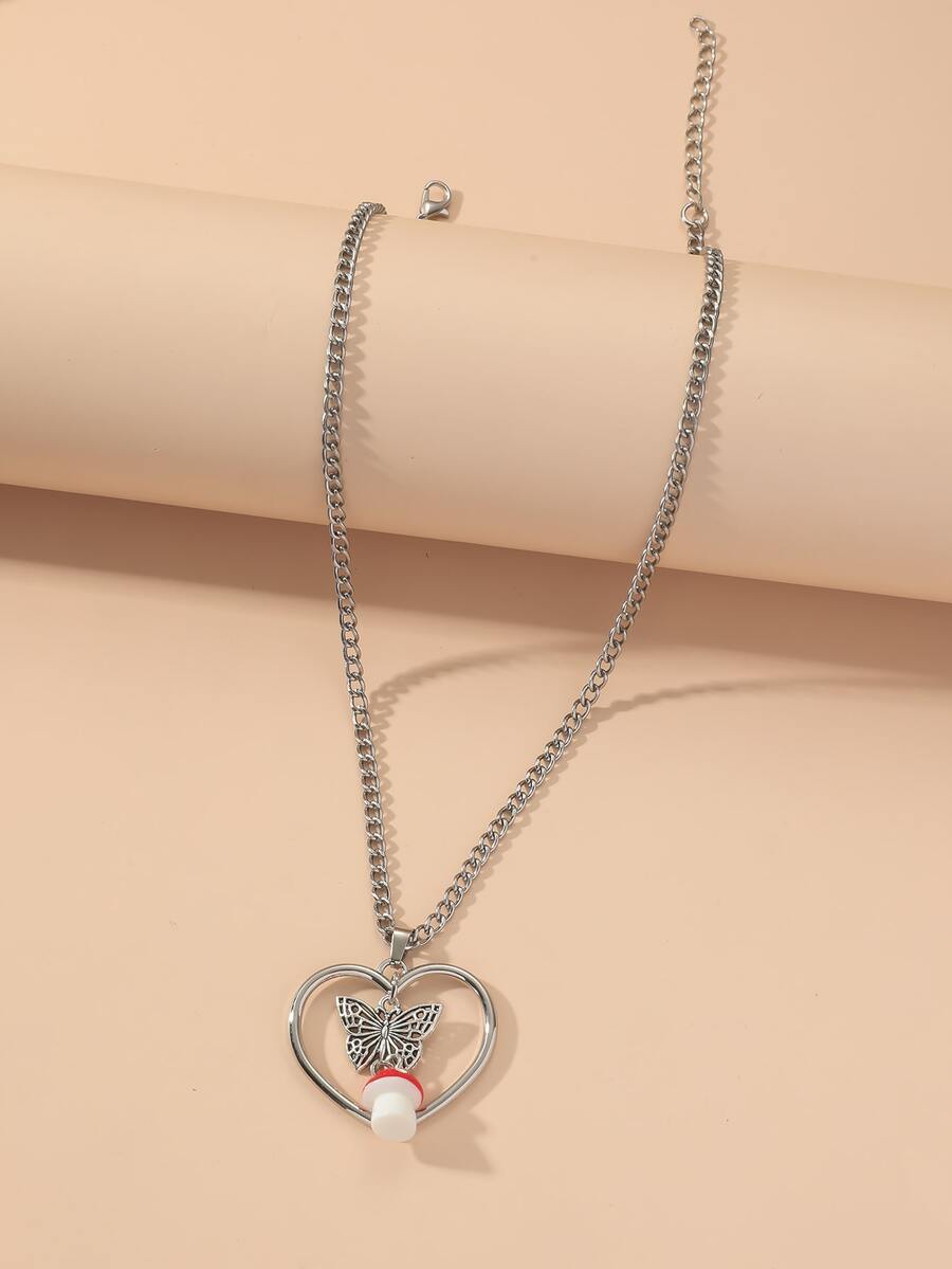 Heart & Mushroom Charm Necklace