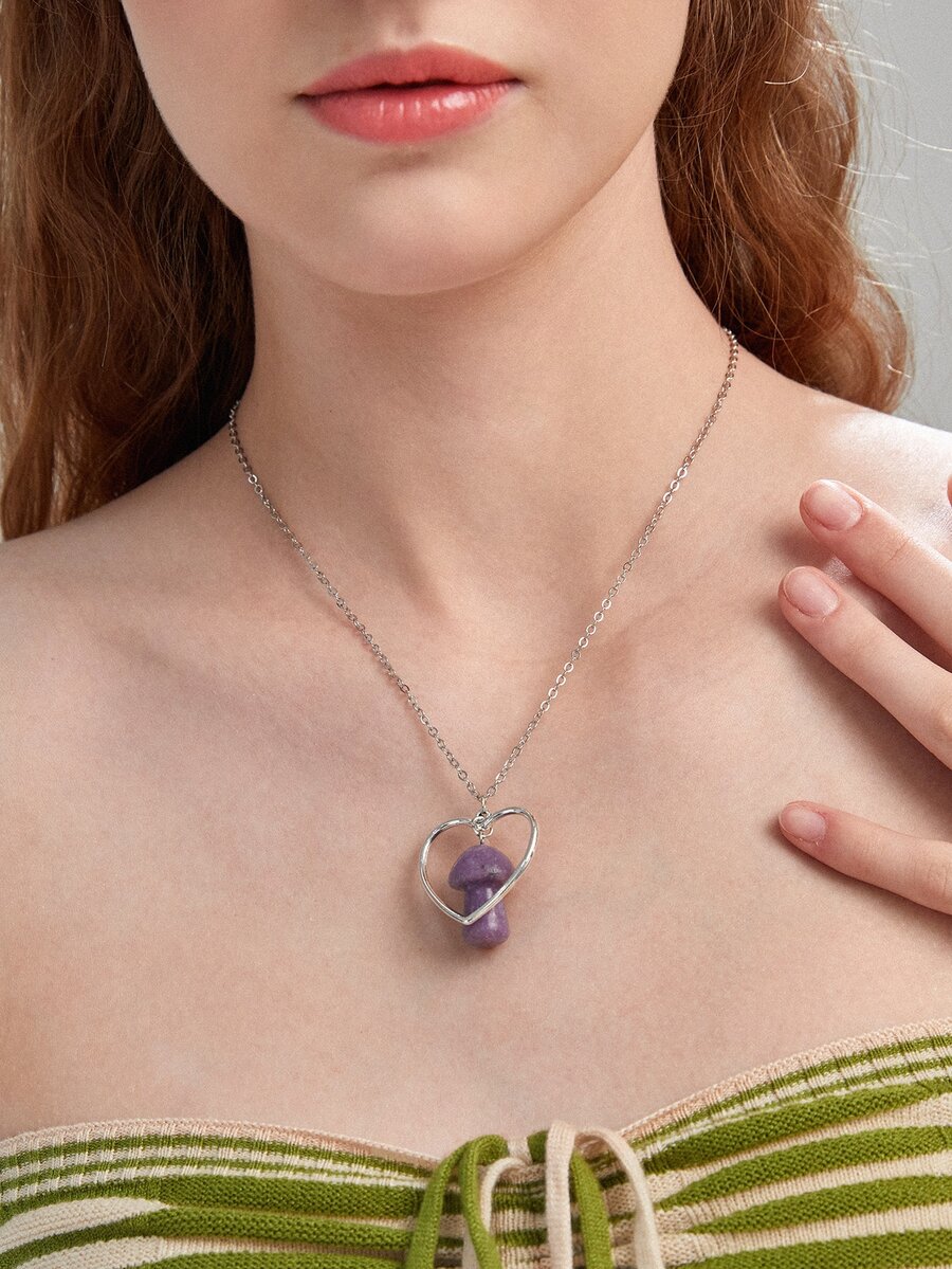 Heart & Mushroom Pendant Necklace