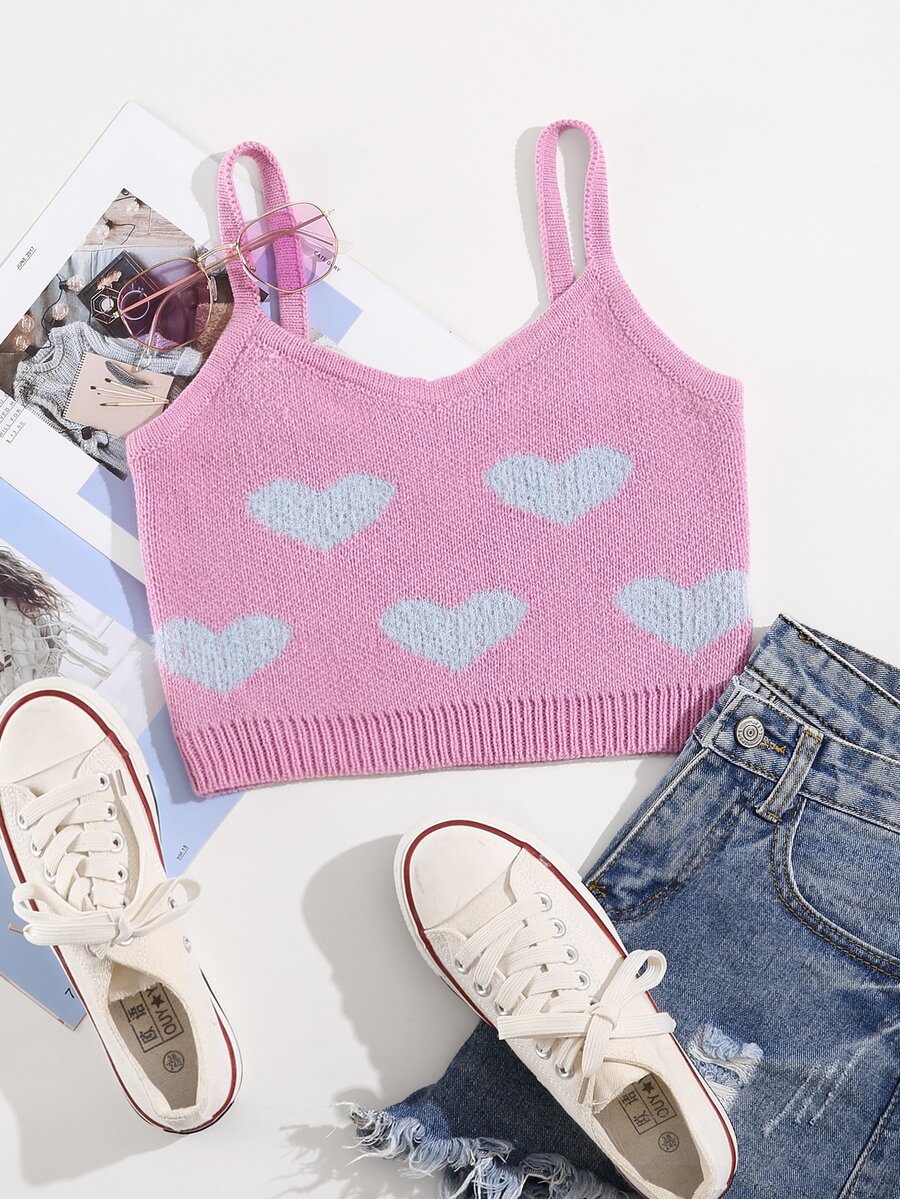 Heart Pattern Knit Cami Top