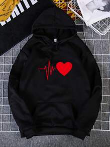 Heart Print Thermal Lined Hoodie