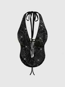Heavy Beaded Embroidered Backless Draped Neck Vacation Sexy Vest For Women