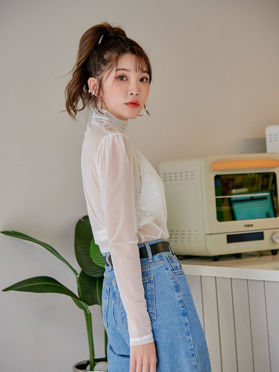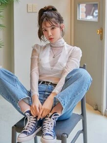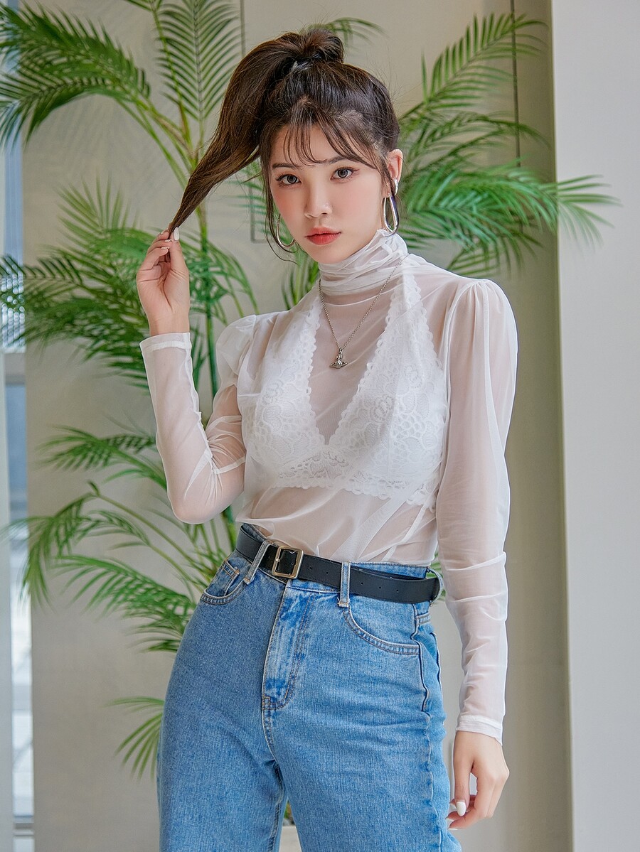 High Neck Sheer Mesh Top