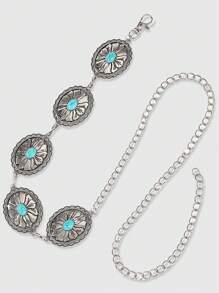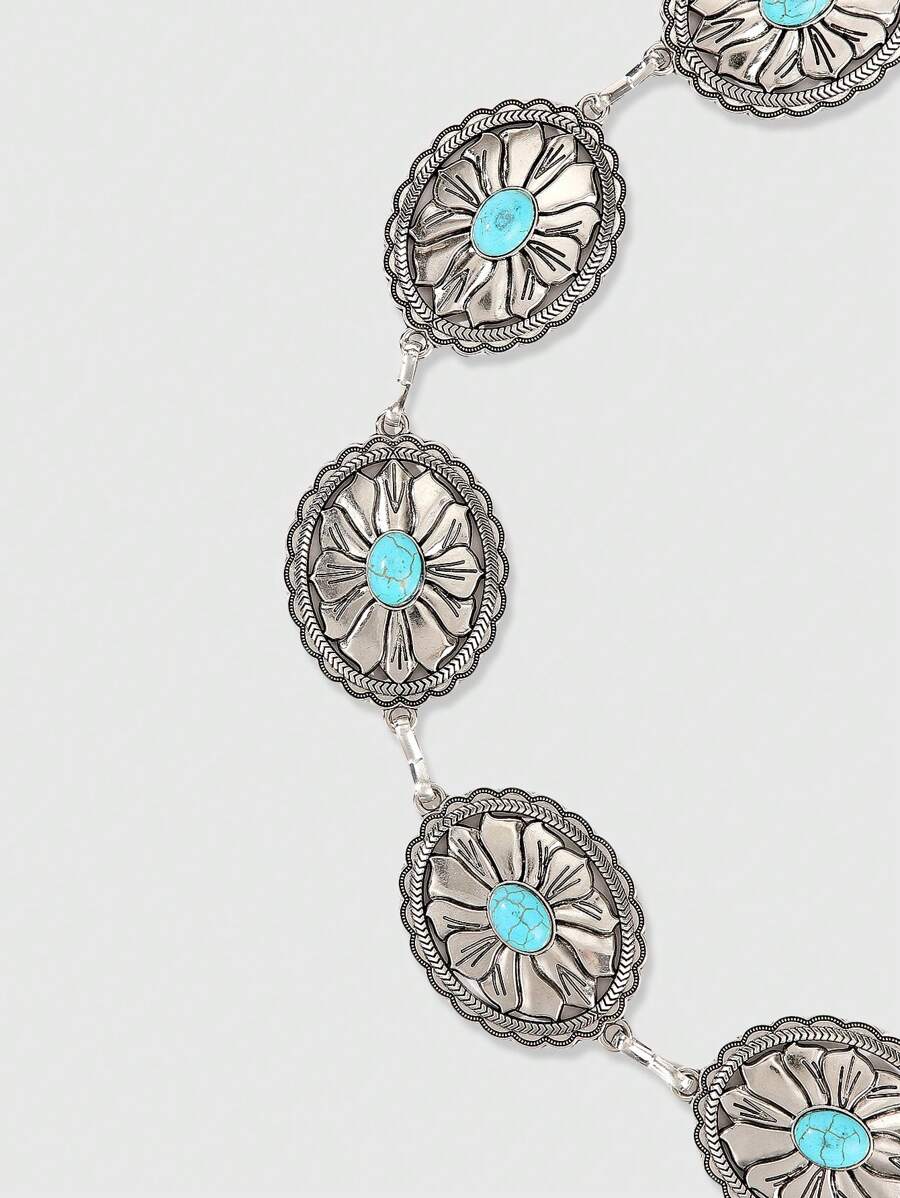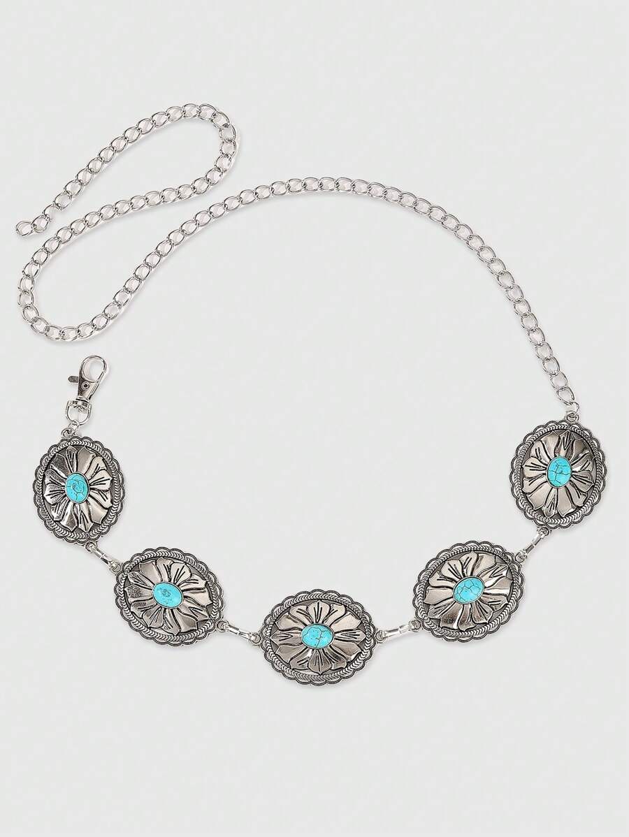 Hippie 1pc Silver Flower Pattern Turquoise Decor Bohemian Waist Chain Accessory, Everyday Casual Dress Pendant