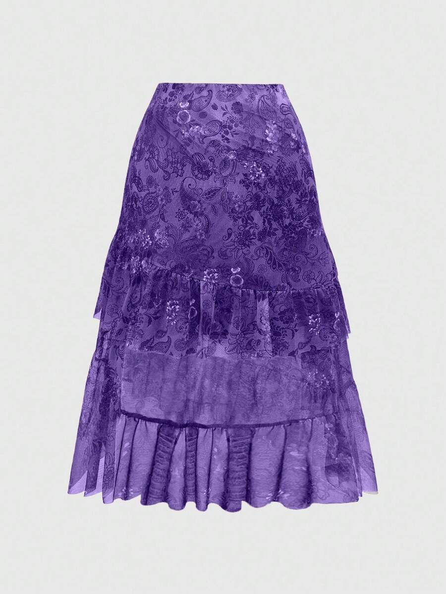 Hippie Boho Ruffled Layered Cashew Print Fashion Skirt For Women