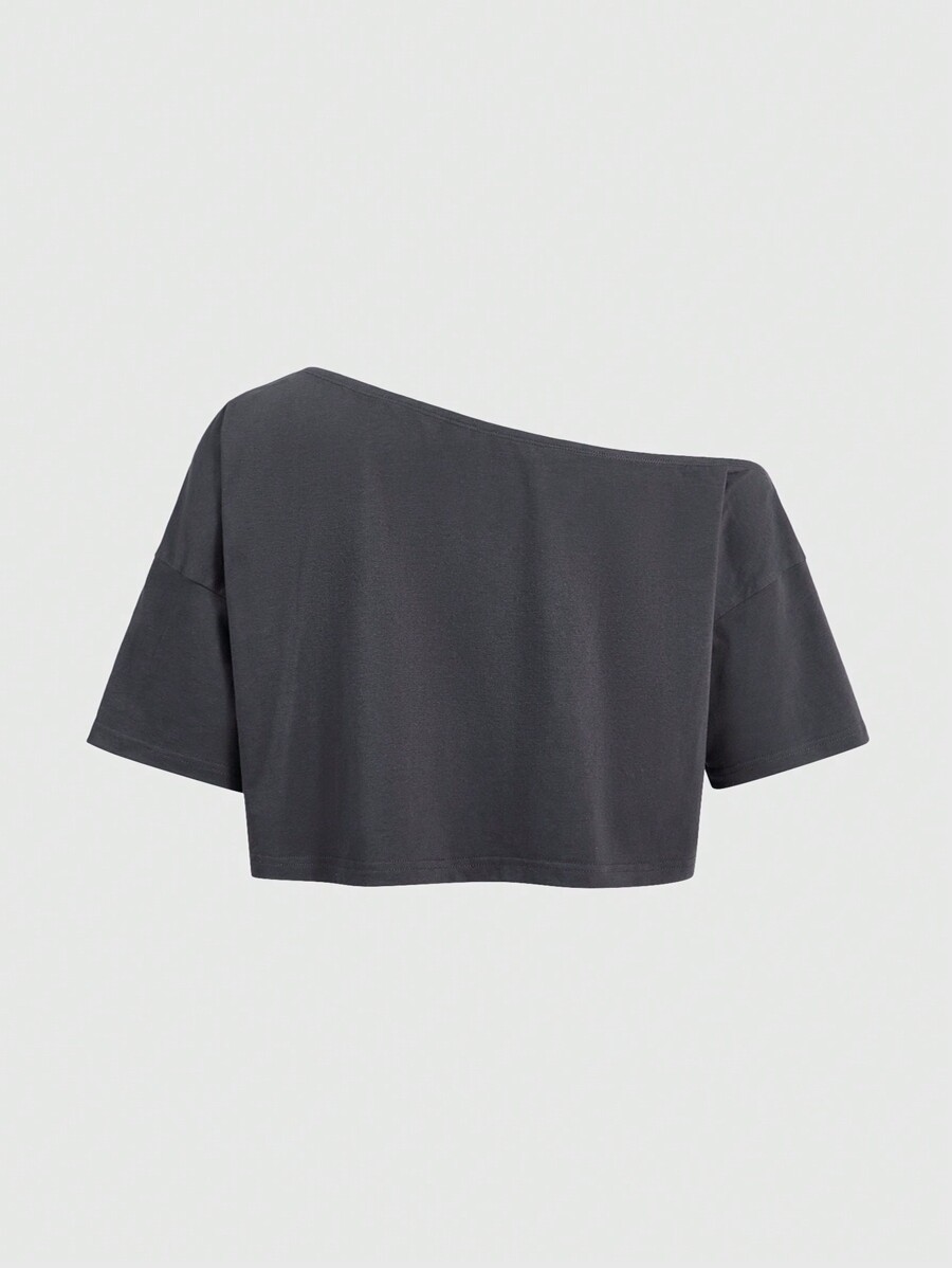 Hippie Plus Size Women's Sun Face Printed Asymmetric Collar T-Shirt