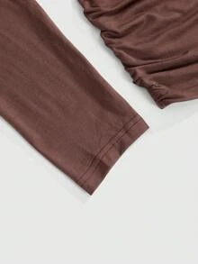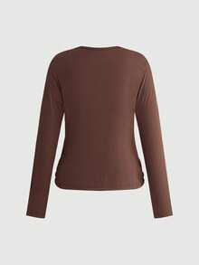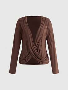 Hippie Sexy Deep Draped Neck Ruched Long Sleeve Women T-Shirt