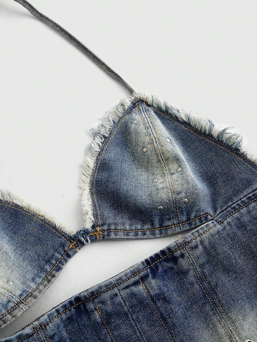Hippie Sexy Y2K Street Style Cowgirl Wash Denim Spaghetti Strap Crop Top For Women