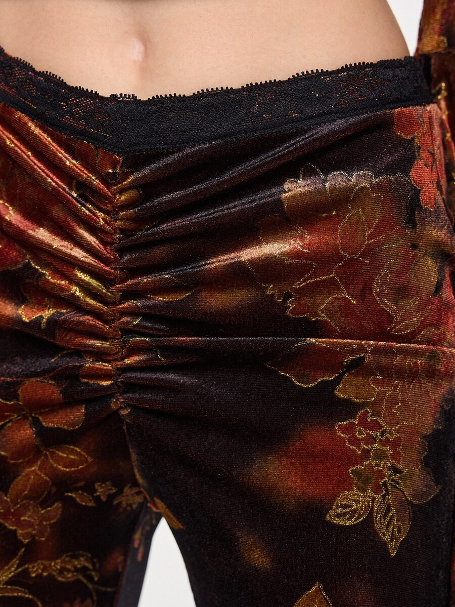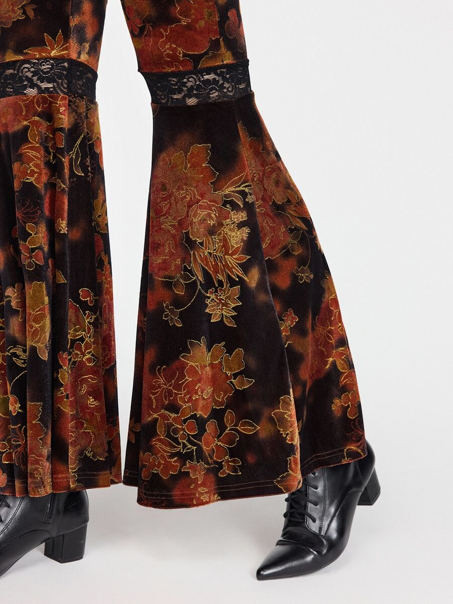 Hippie Vintage Floral Print Velvet Flare Pants, Autumn/Winter