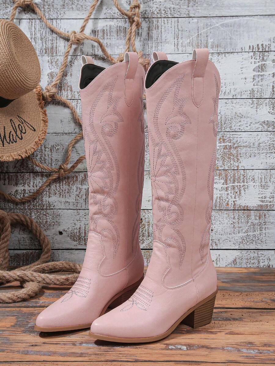 Hippie Women Embroidery Detail Point Toe Chunky Heeled Western Boots, Cool Outdoor Fashion Boots
