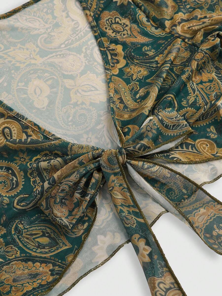 Women Hippie Style Vacation Boho Paisley Print Flare Sleeve Top