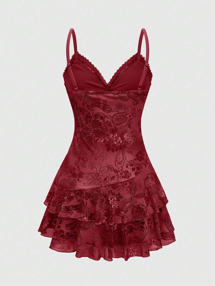 Women's Vintage Hippie Ruffled Ribbon Lace Paisley Print Plus Size Mini Dress