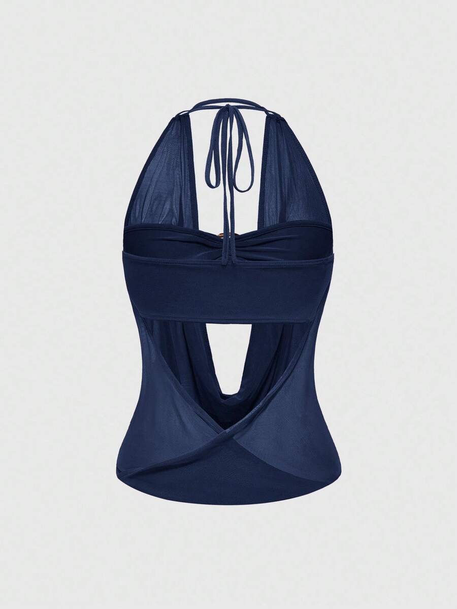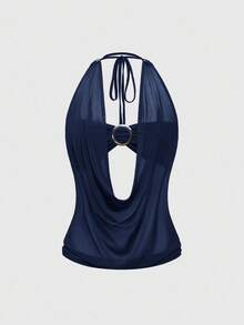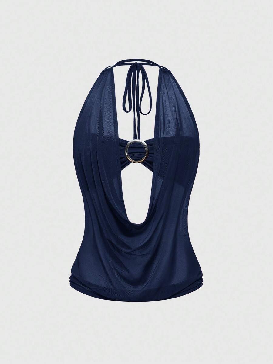 Hippie Women's Y2K Retro Deep Draped Neck Backless Halter Crop Top (Includes Bandeau Bra)