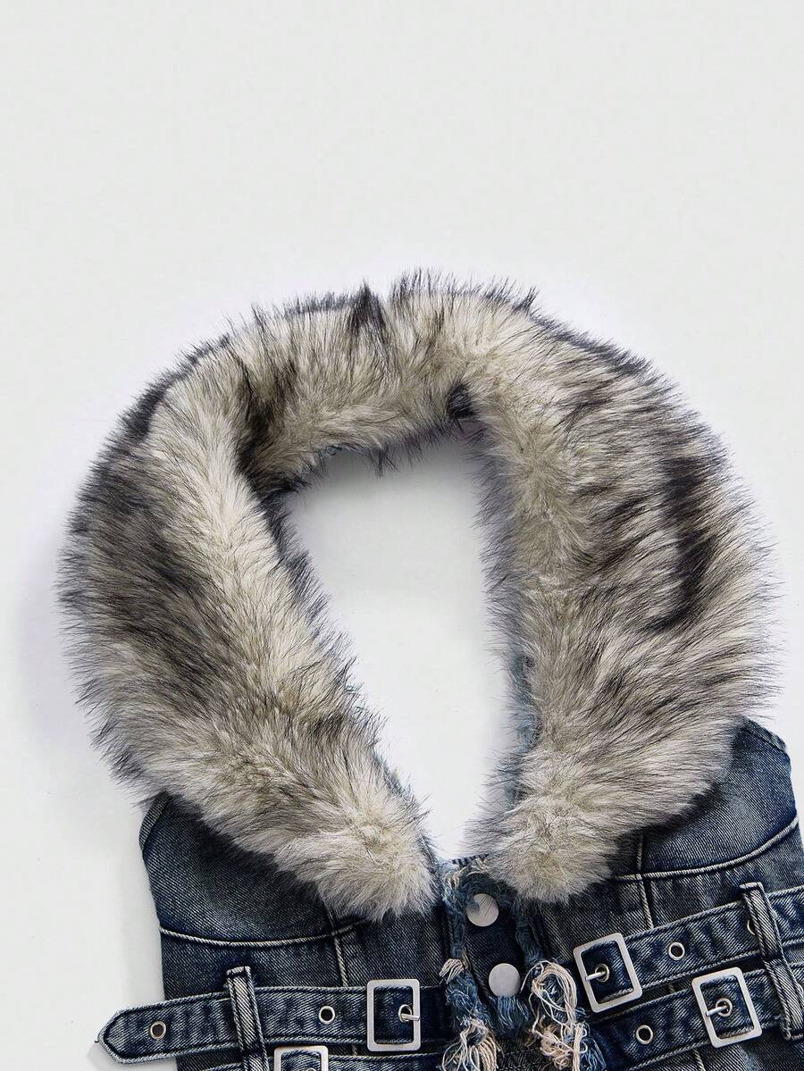 Hippie Y2K Removable Faux Fur Collar Denim Jacket For Women