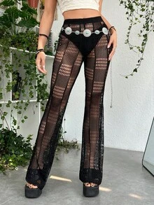 Hollow Out Flare Leg Pants Without Panty and Belt