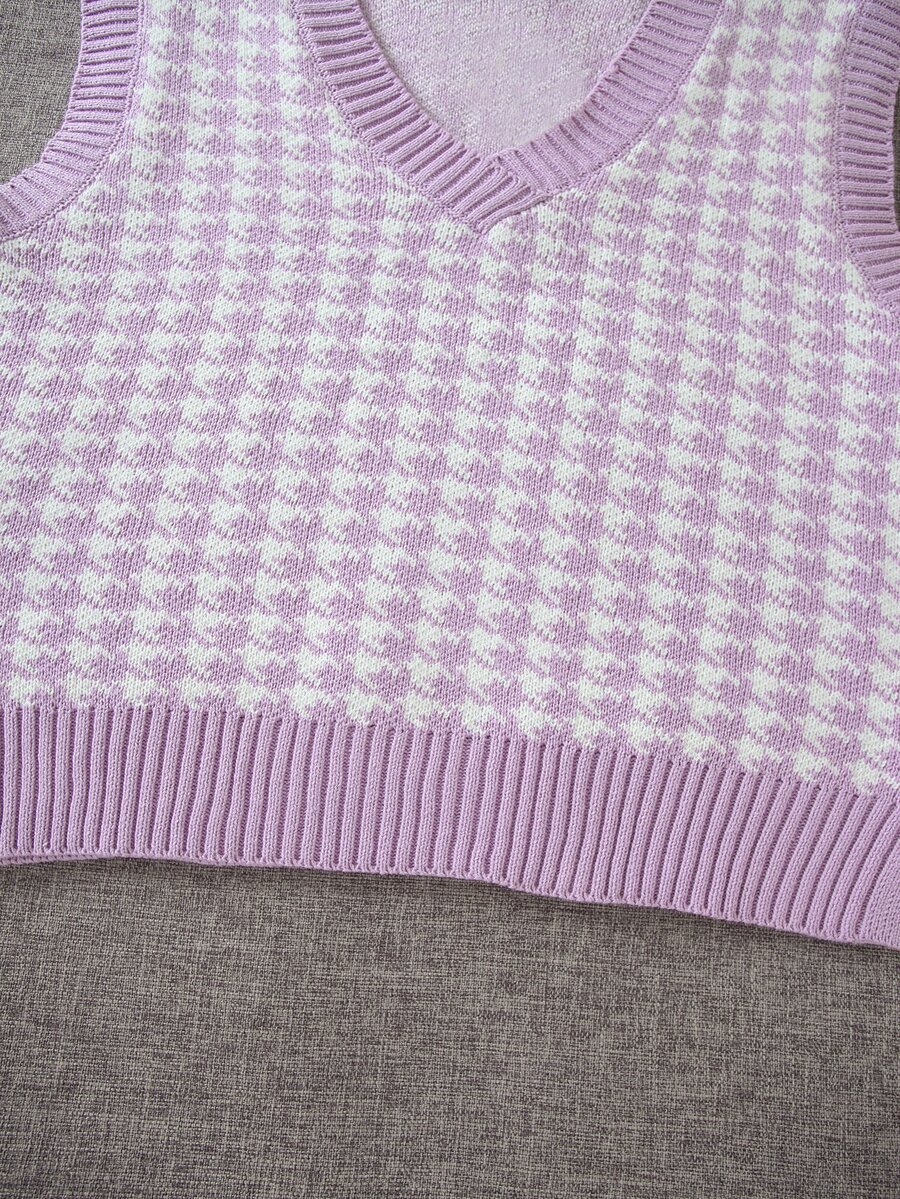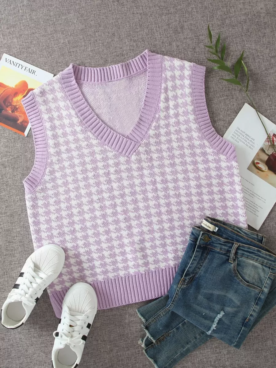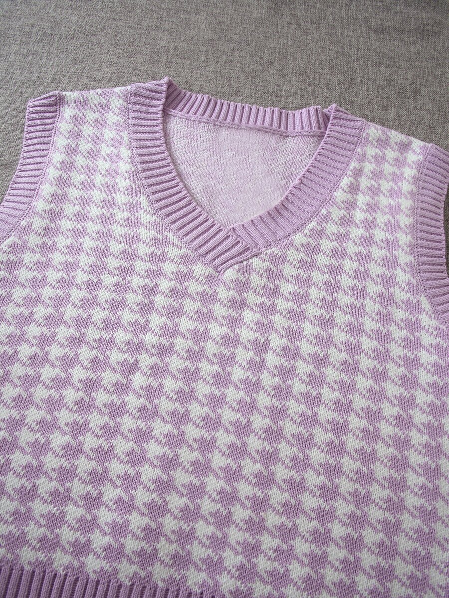 Houndstooth V-neck Sweater Vest