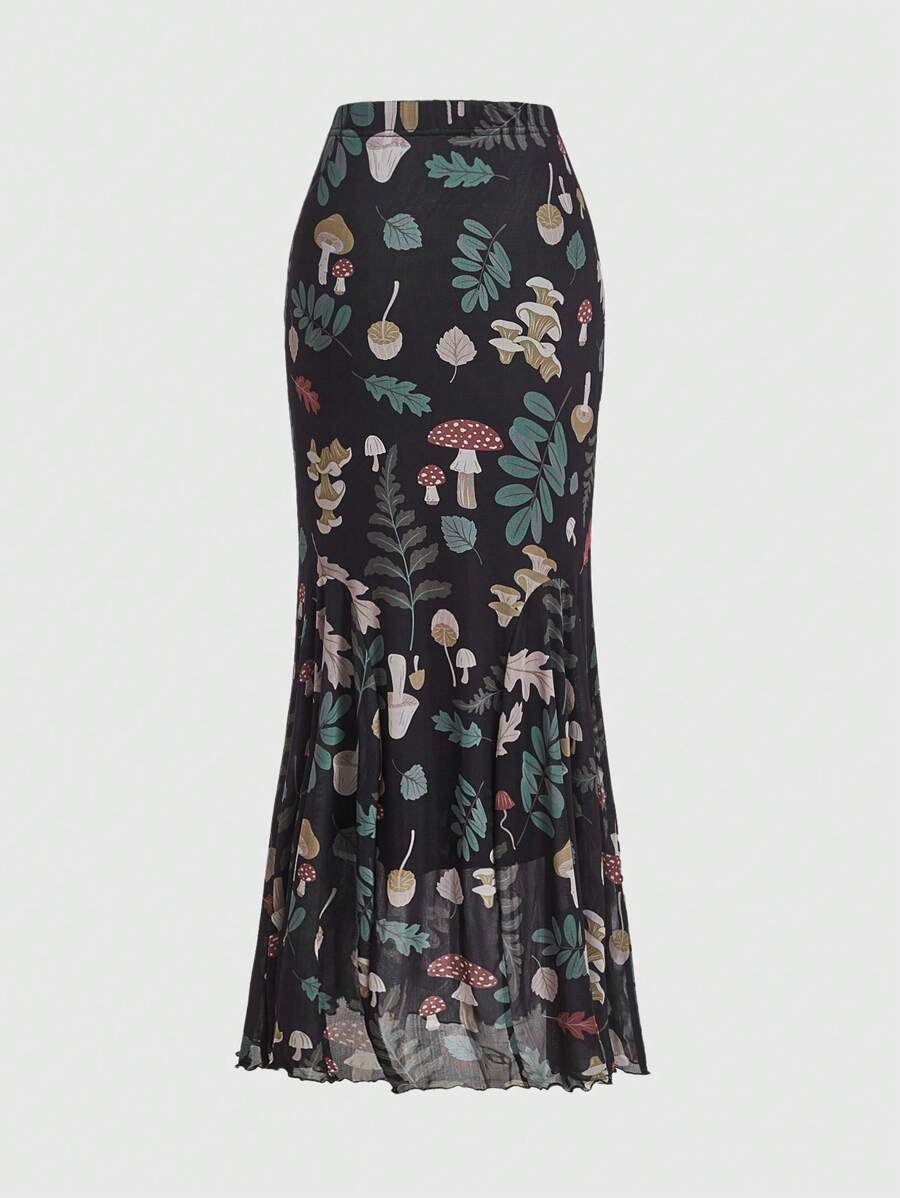 Inna Moreva Fairycore Mushroom Print Mermaid Hem Mesh Skirt