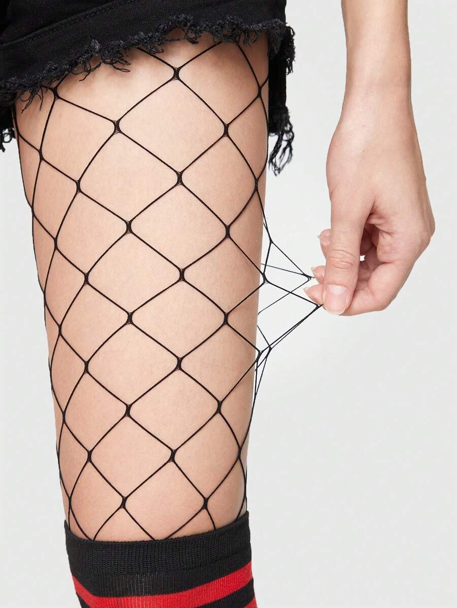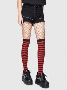 J-Fashion 1pair Simple Fishnet Socks + 1pair Striped Over Knee Socks