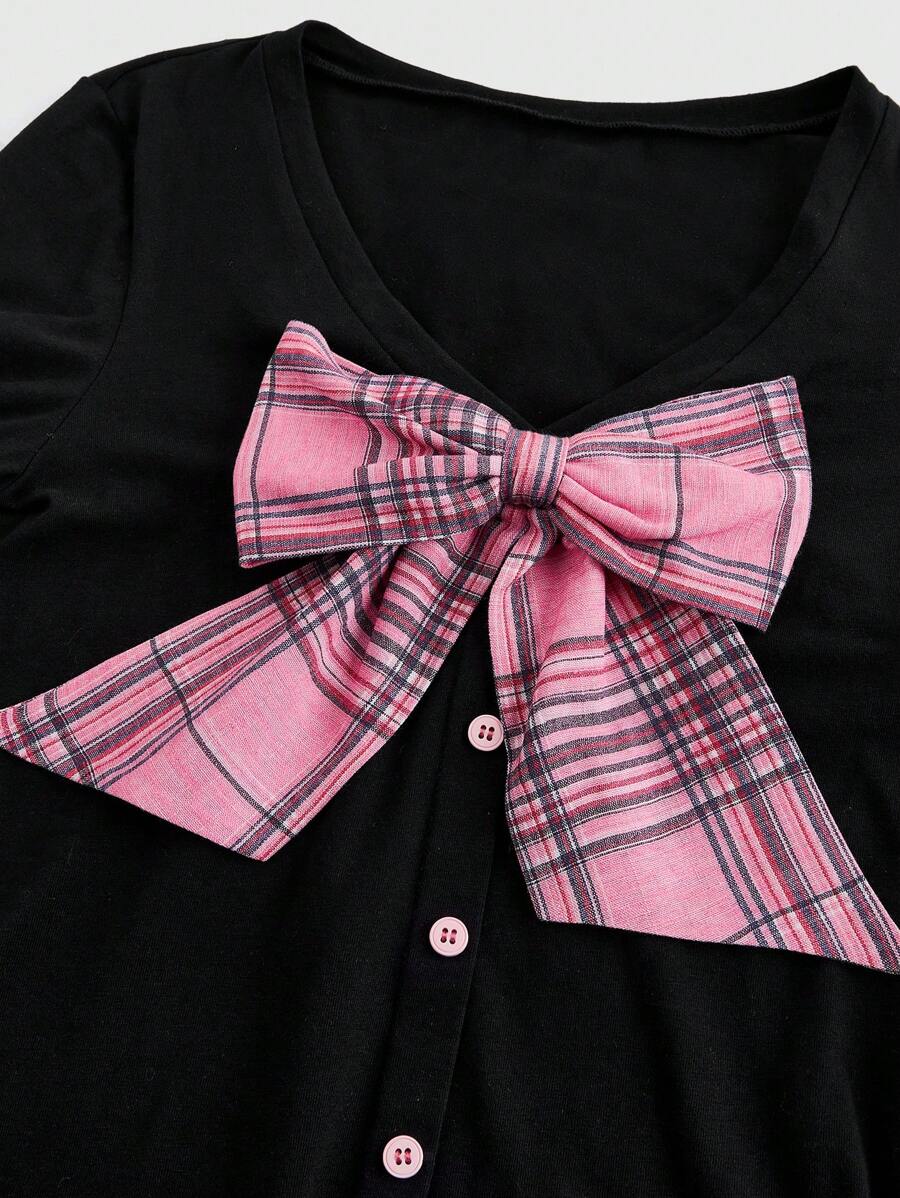J-Fashion 2 Pieces Set Women Cute Schoolgirl Style Plaid Bow Decor