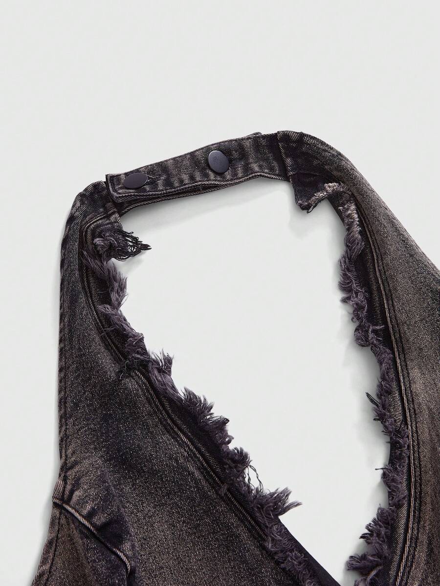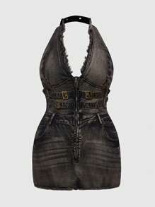 J-Fashion Distressed, Colorful Y2K Style Open Shoulder Bodycon Mini Denim Dress, Plus Size
