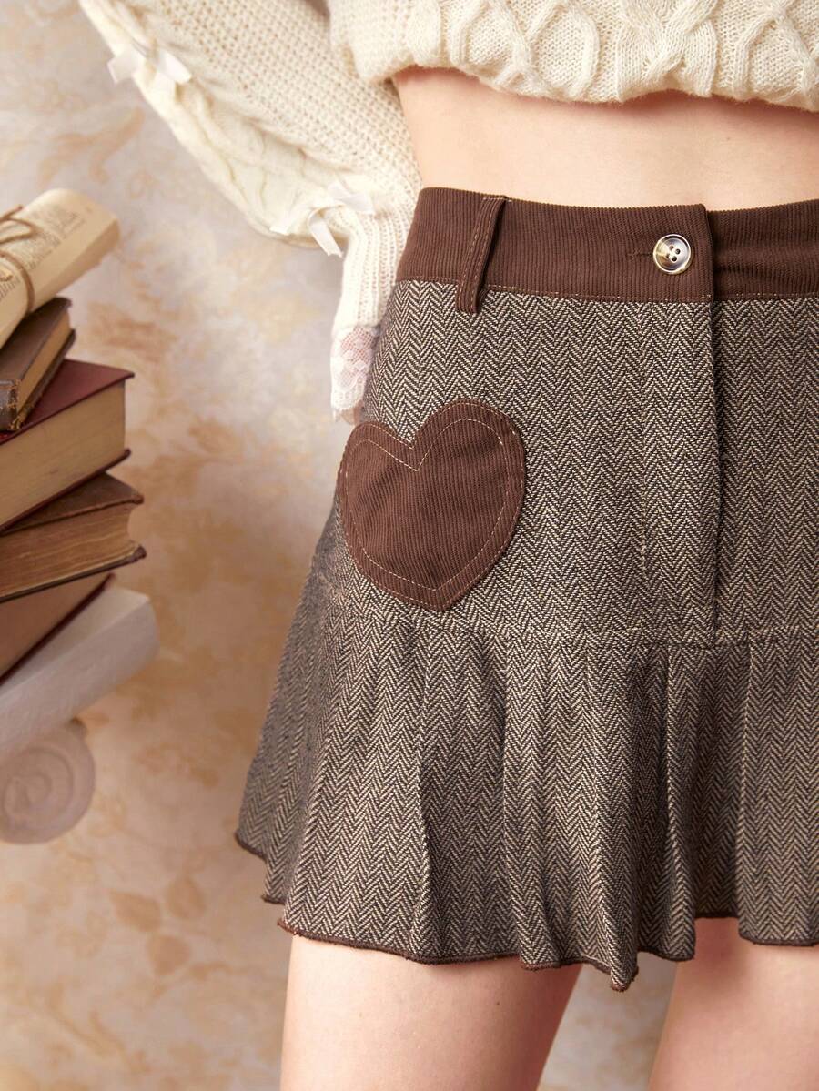 J-Fashion Heart Pattern Pleated Skirt
