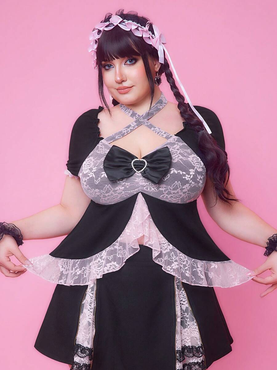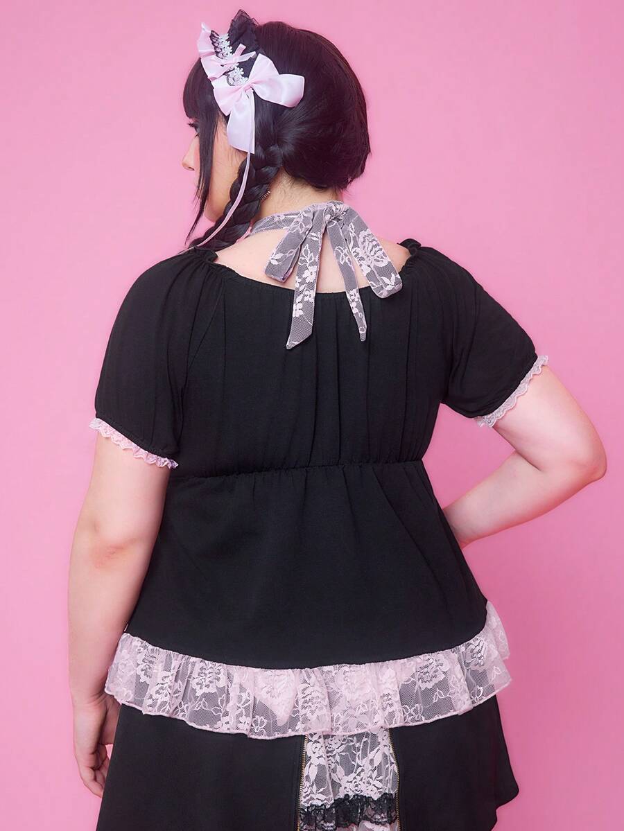J-Fashion Shibuya Girl Y2K Style Lace Patchwork Plus Size T-Shirt