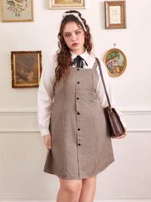 J-Fashion Plus Plaid Print Button Front Dress Without Blouse