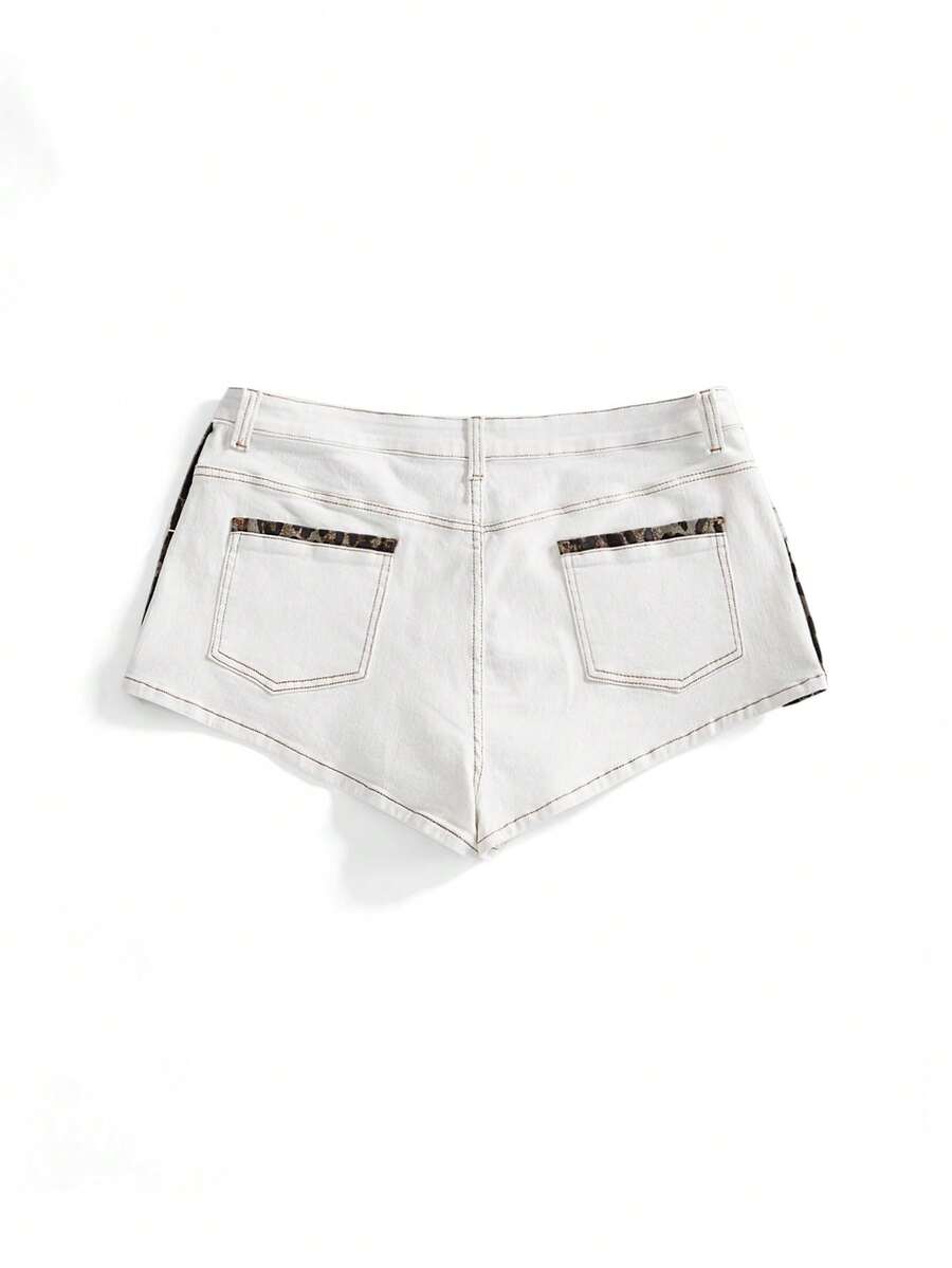 J-Fashion Plus Size Vintage Washed Leopard Print Patchwork Sexy Skinny Denim Super Short Shorts