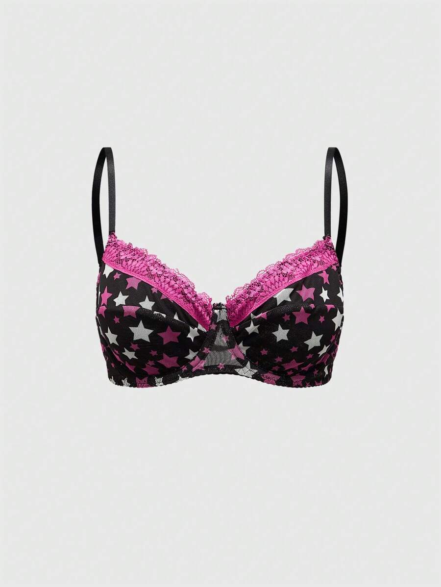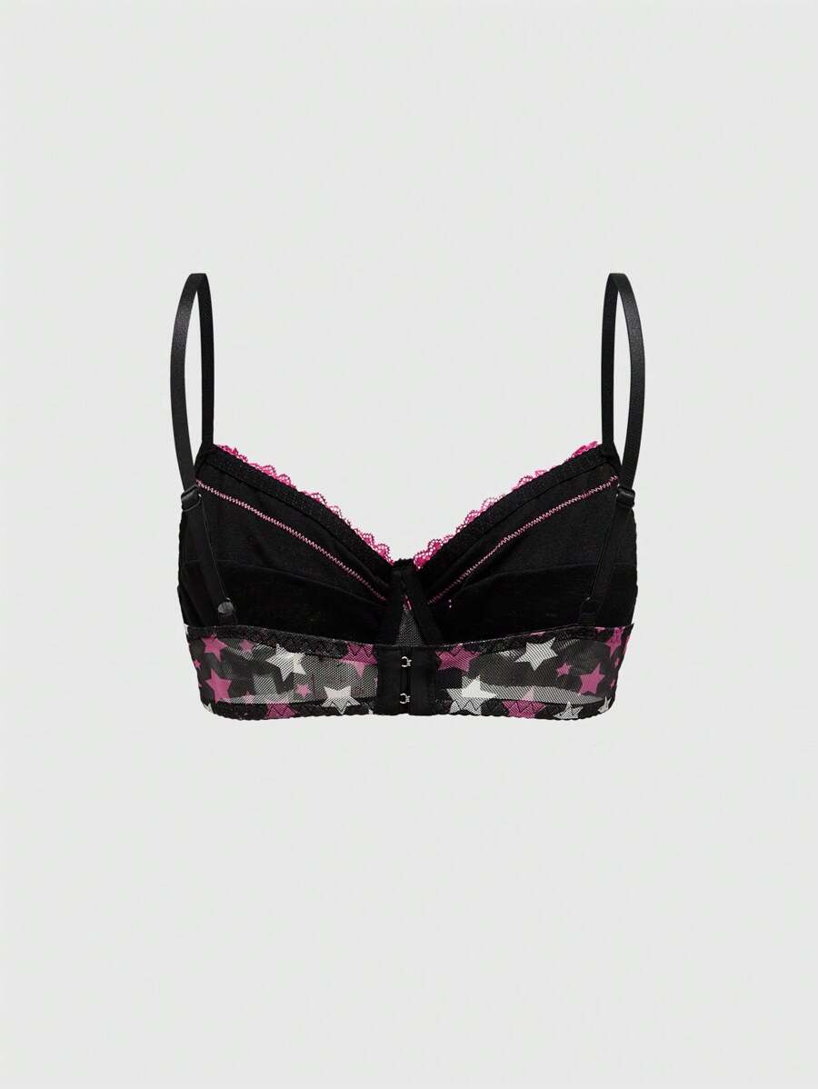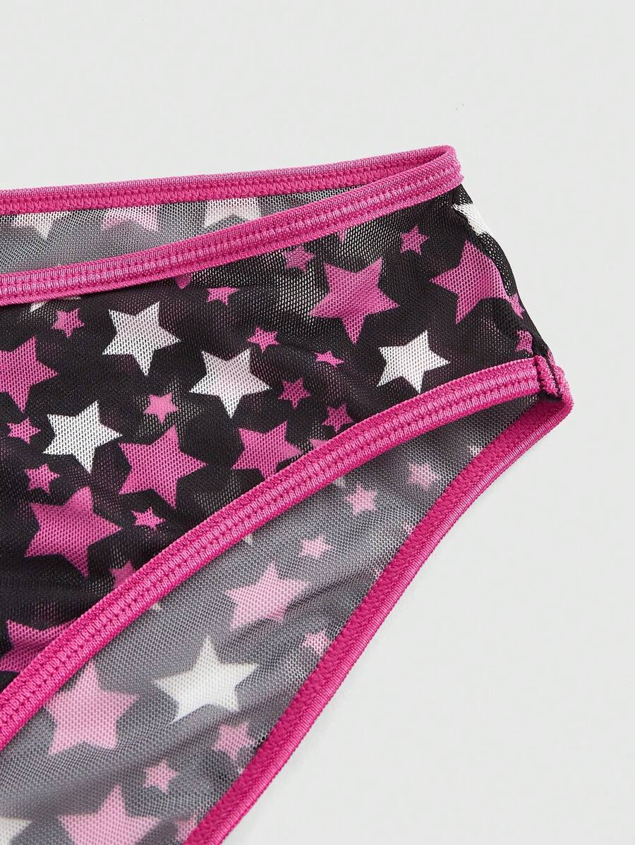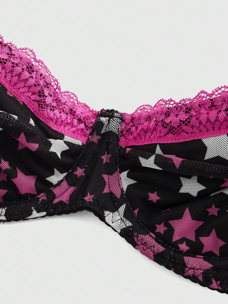 J-Fashion Shibuya Gal Five-Pointed Star & Lace Patchwork Sexy Mesh Lingerie Set