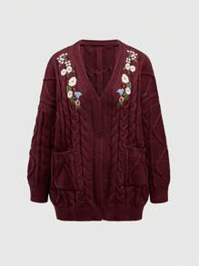 J-Fashion Women Floral Embroidery Pocket Casual Long Sleeve Blouse, Everyday Wear