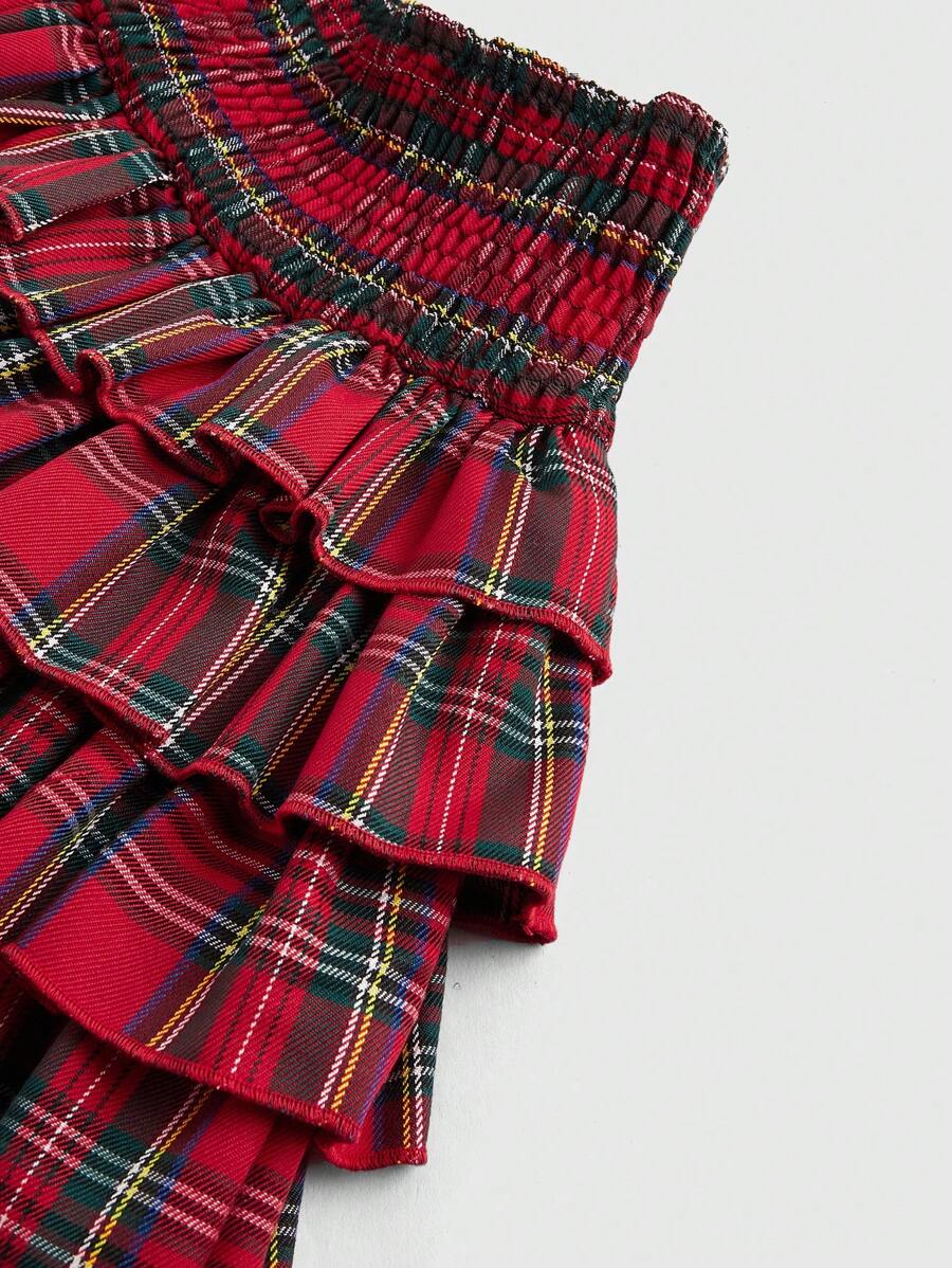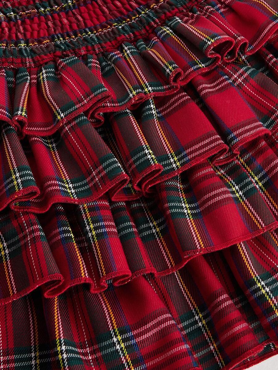 J-Fashion Women's Christmas Plaid Print Ruffle Hem Mini Skirt
