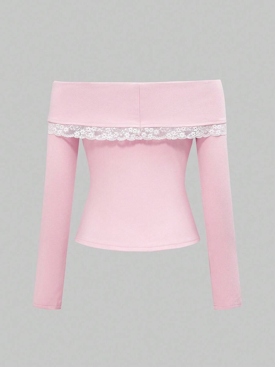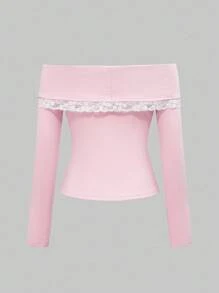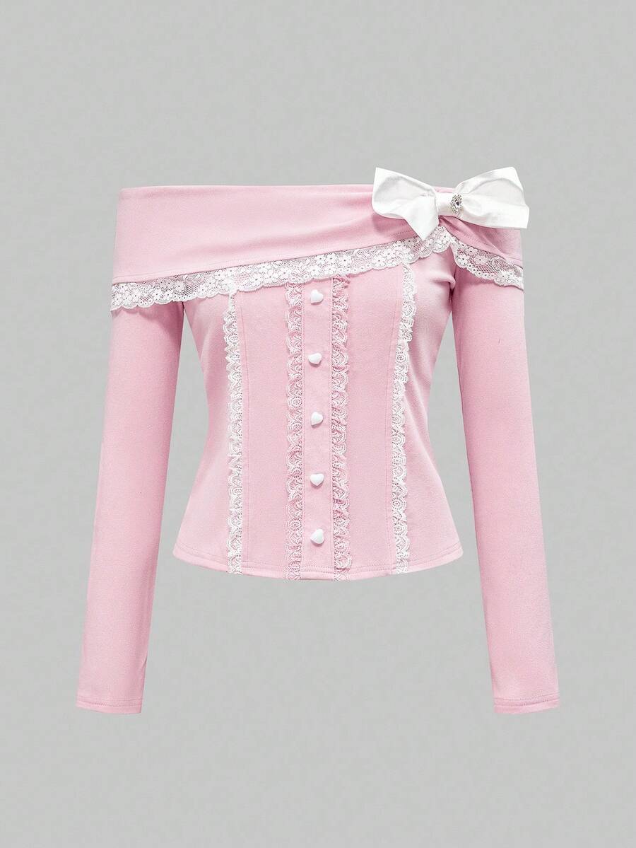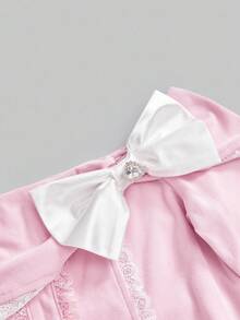 J-Fashion Women's Cute Girly Hime Gyaru Faux Fur & Lace Colorblock Bowknot Neck Long Sleeve T-Shirt
