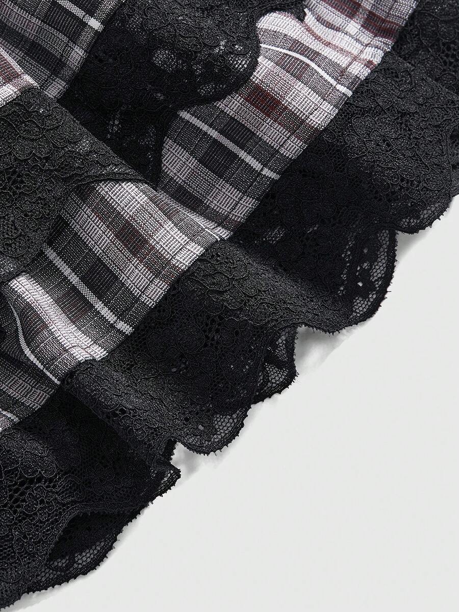 J-Fashion Women's Plaid Lace Trim Fashion A-Line Mini Skirt For Summer