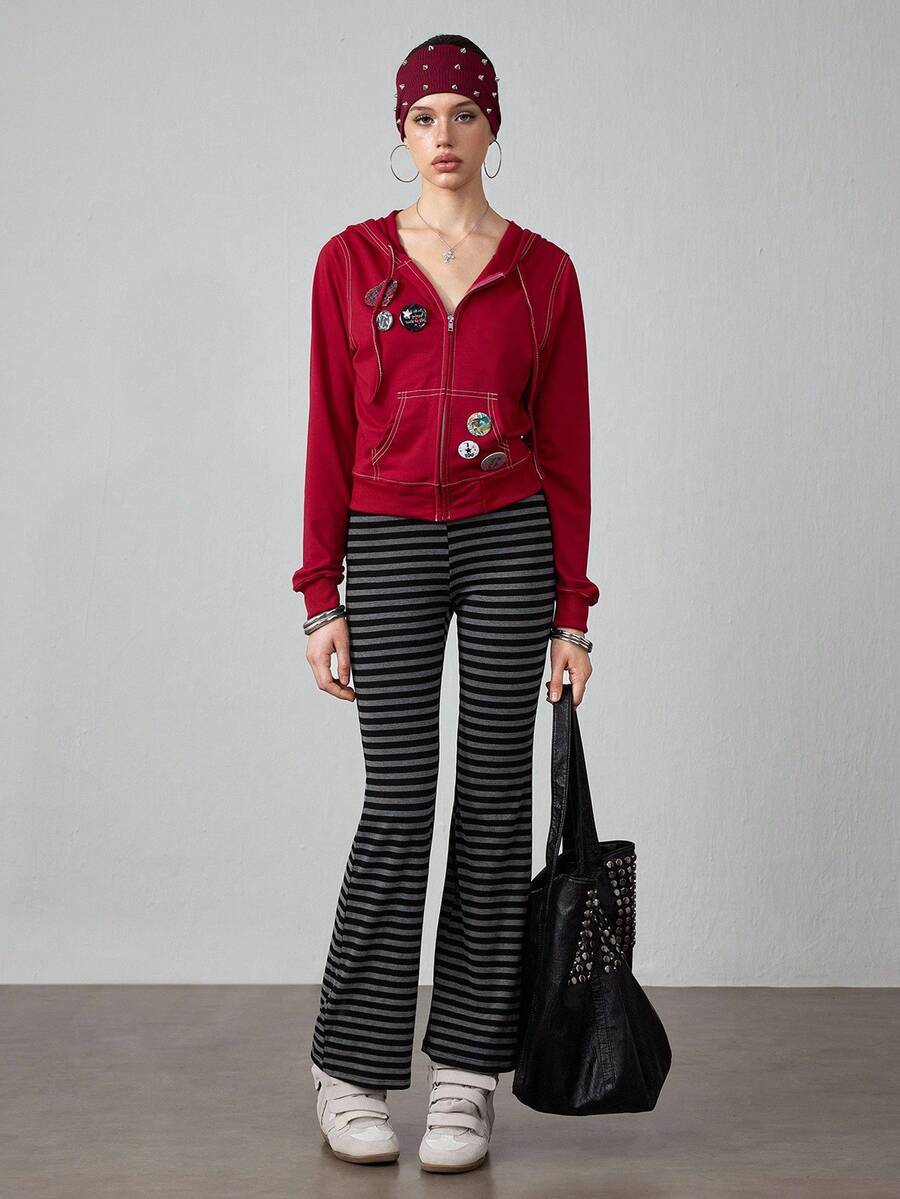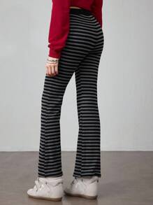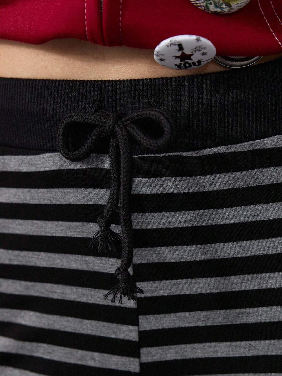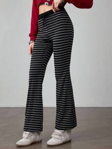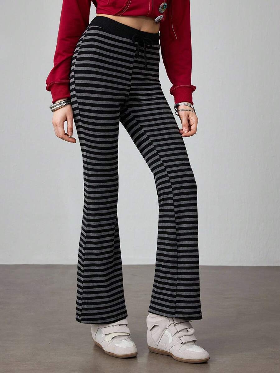 J-Fashion Women's Striped Drawstring Waist Casual Wide Leg Pants