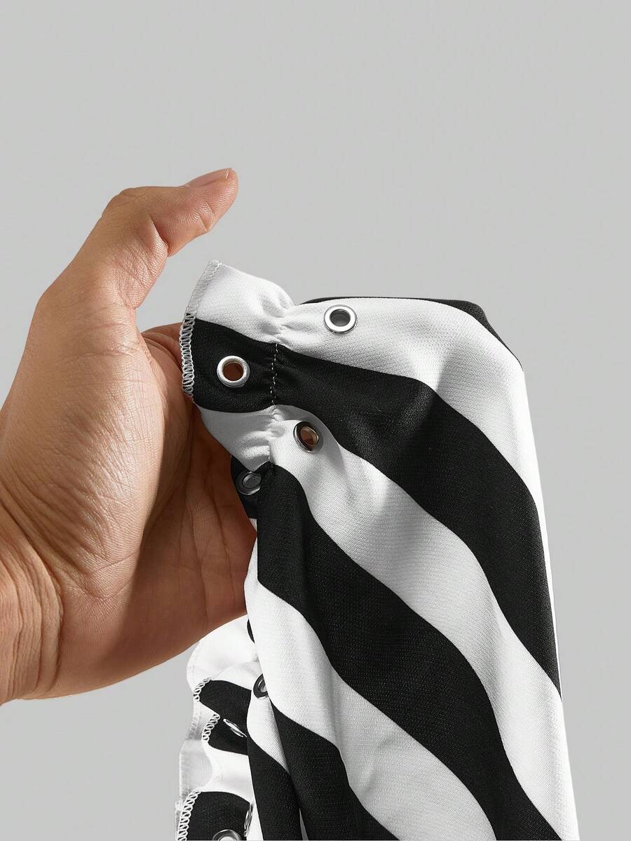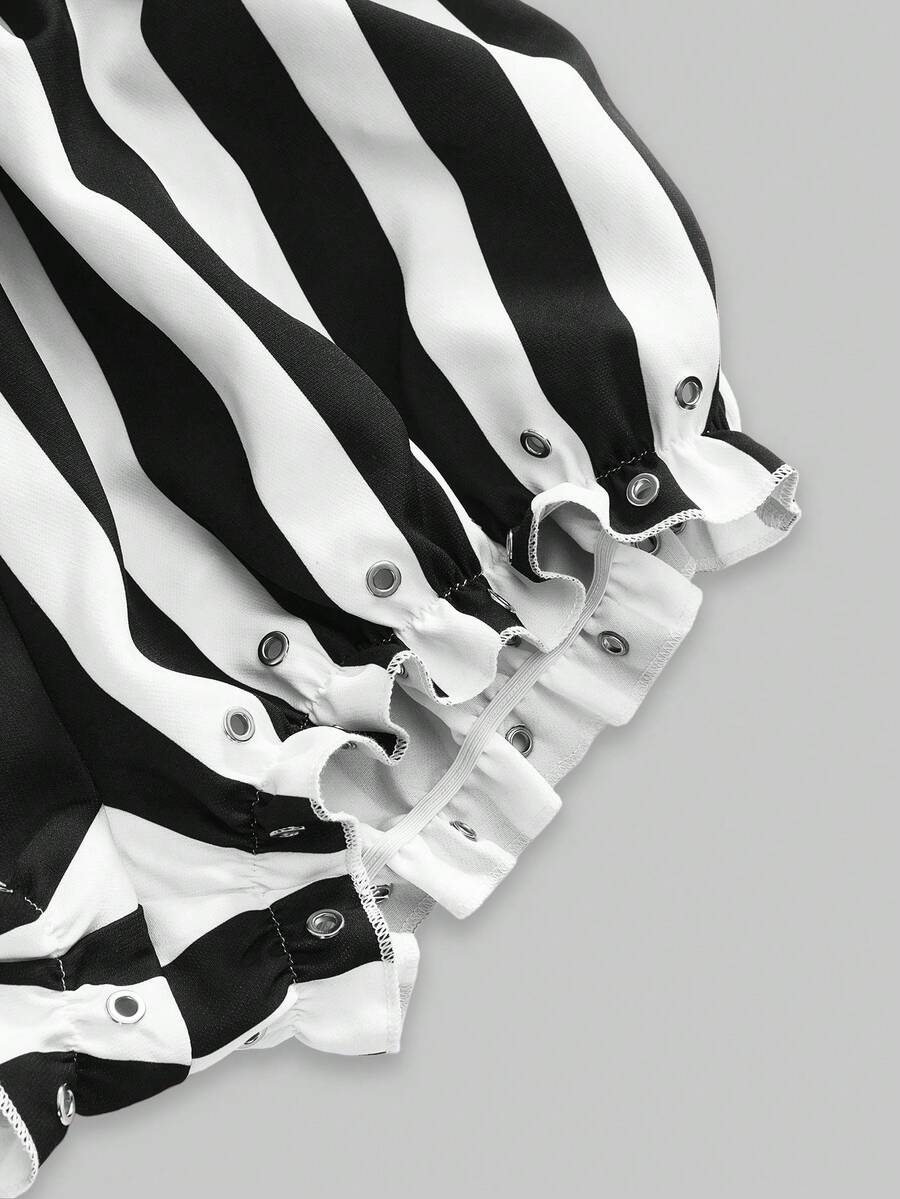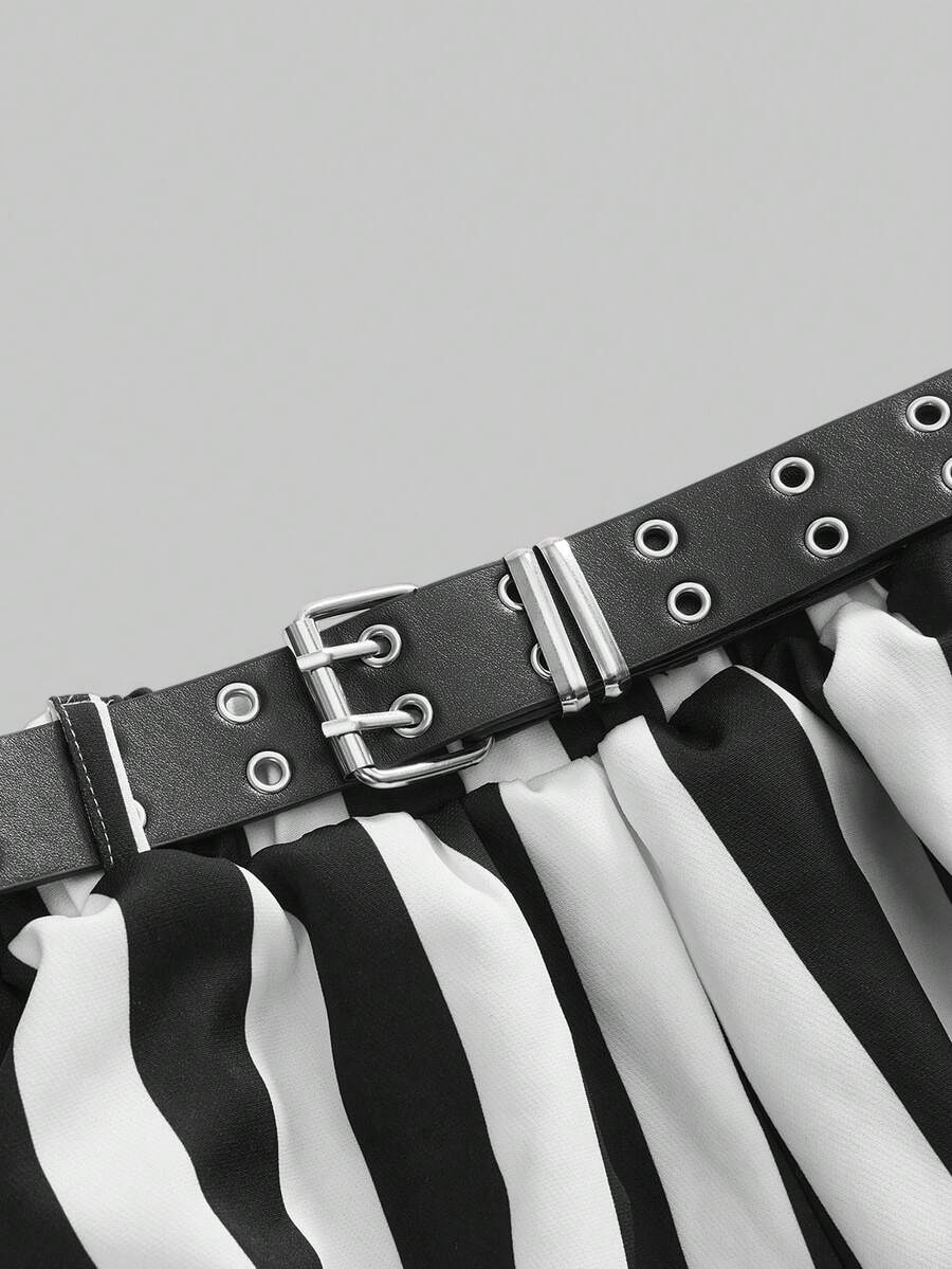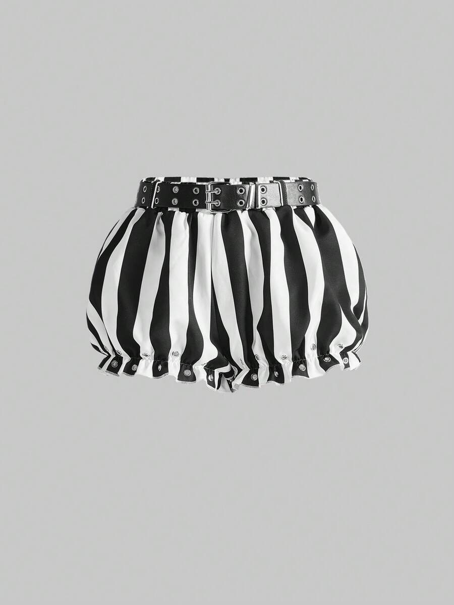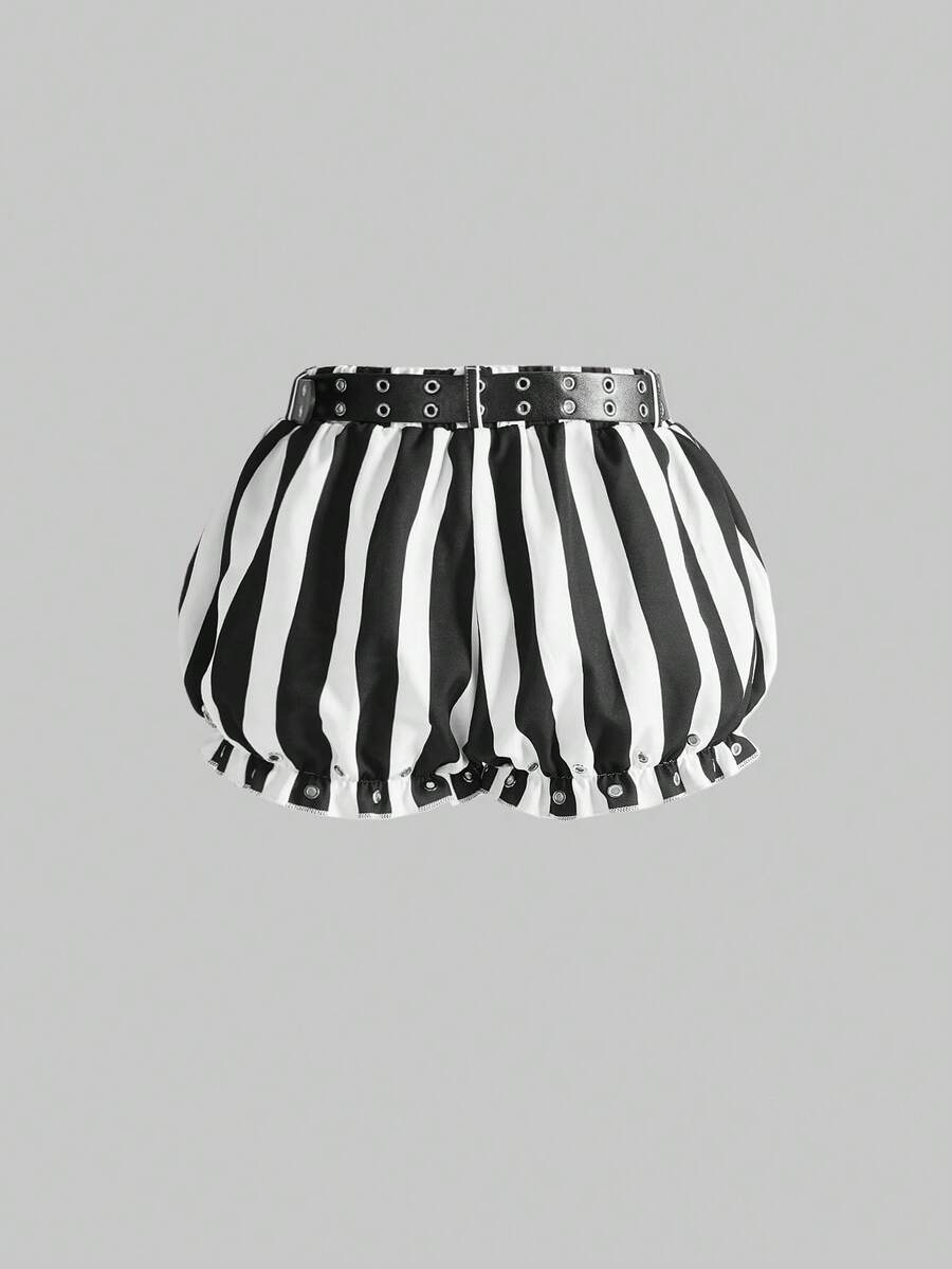 J-Fashion Women's Summer Fashion Street Casual Y2K Retro Gothic Style Black & White Striped Pumpkin Print Grommet Detail Shorts With Belt