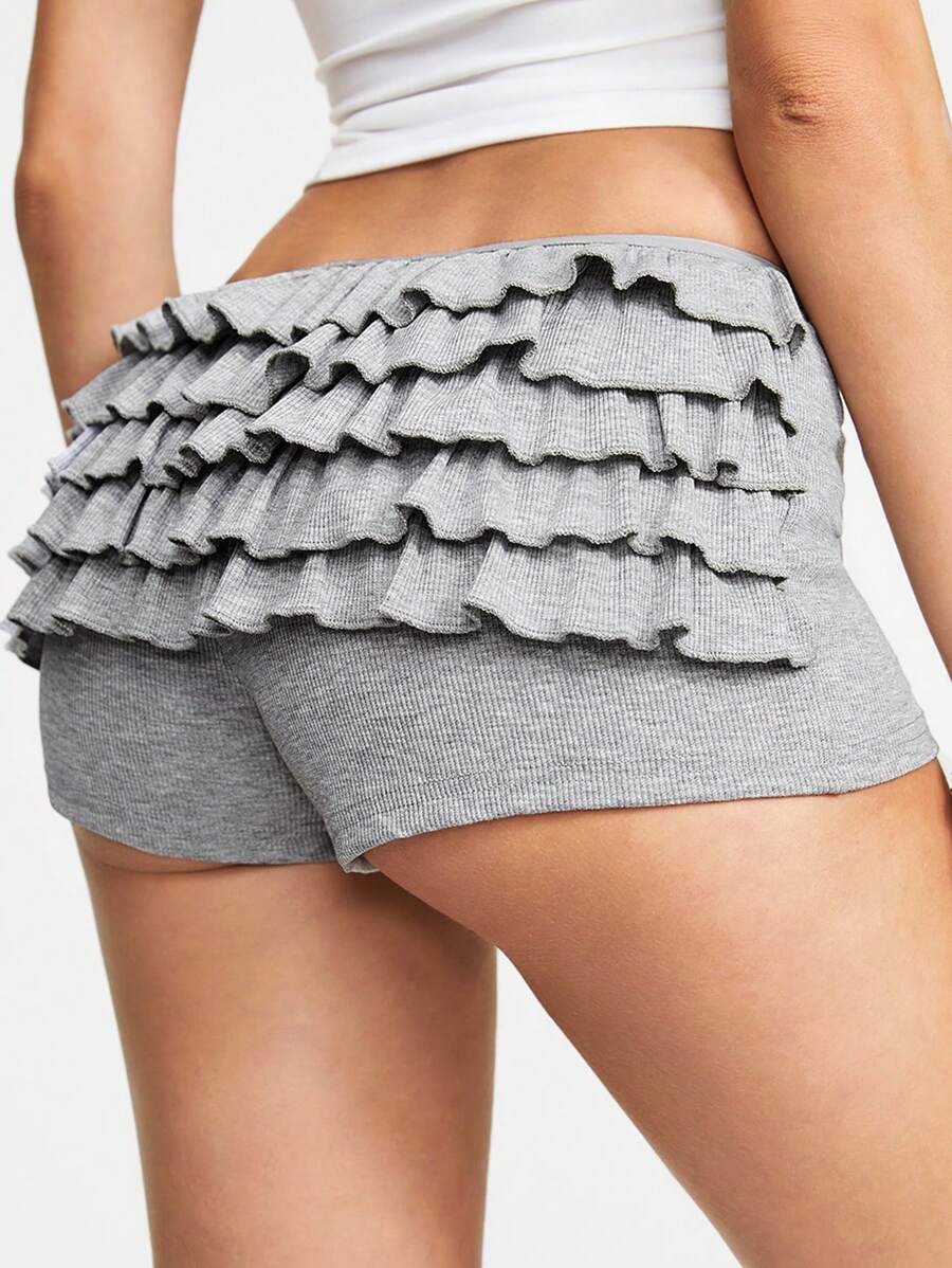 J-Fashion Y2K Cute Retro Pleated Ruffle Hem Low Waist Women's Shorts