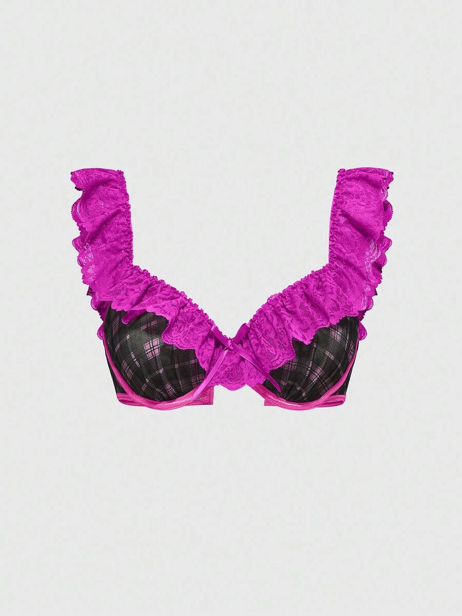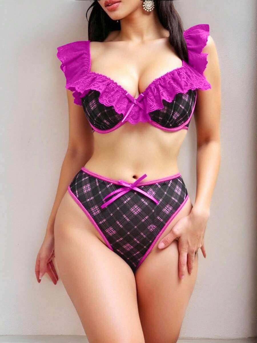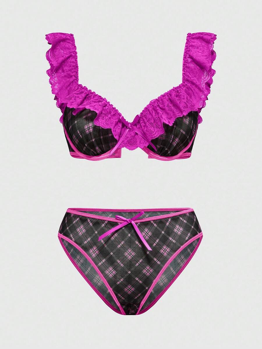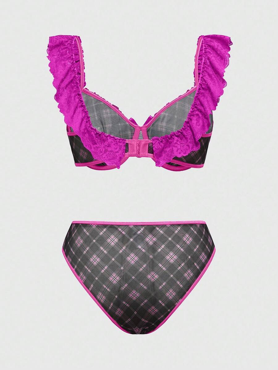 J-Fashion Y2K Fashion Checkered Lace Patchwork Underwire Women Sexy Lingerie Set