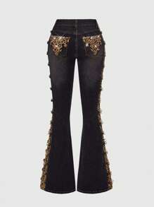 J-Fashion Y2K Harajuku Gyaru Lace Patchwork Low Waist Cross Vintage Tight Waisted Super Low Rise Jeans For Women