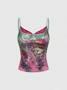 J-Fashion Y2K Harajuku Style Colorblock Wing & Rose Print Pieced Sleeveless Tank Top