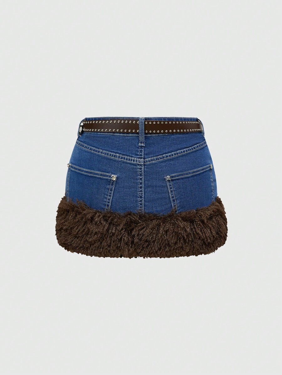 J-Fashion Y2K Streetwear Rhinestone Skull & Star Pattern Distressed Sexy Mini Skirt With Belt For Women