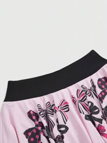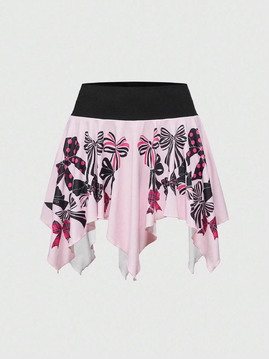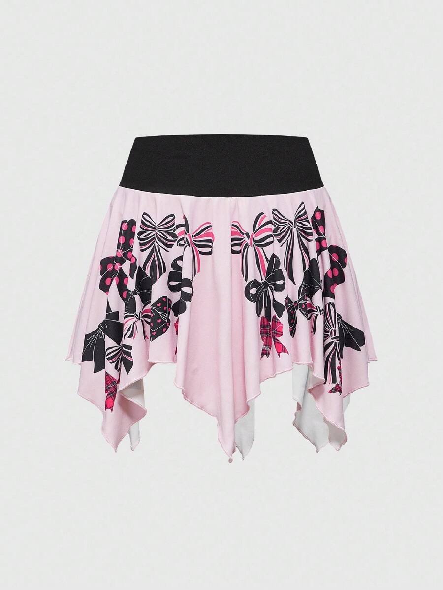 J-Fashion Y2K Style Bowknot Asymmetrical Hem Pink Mini Skirt For Women