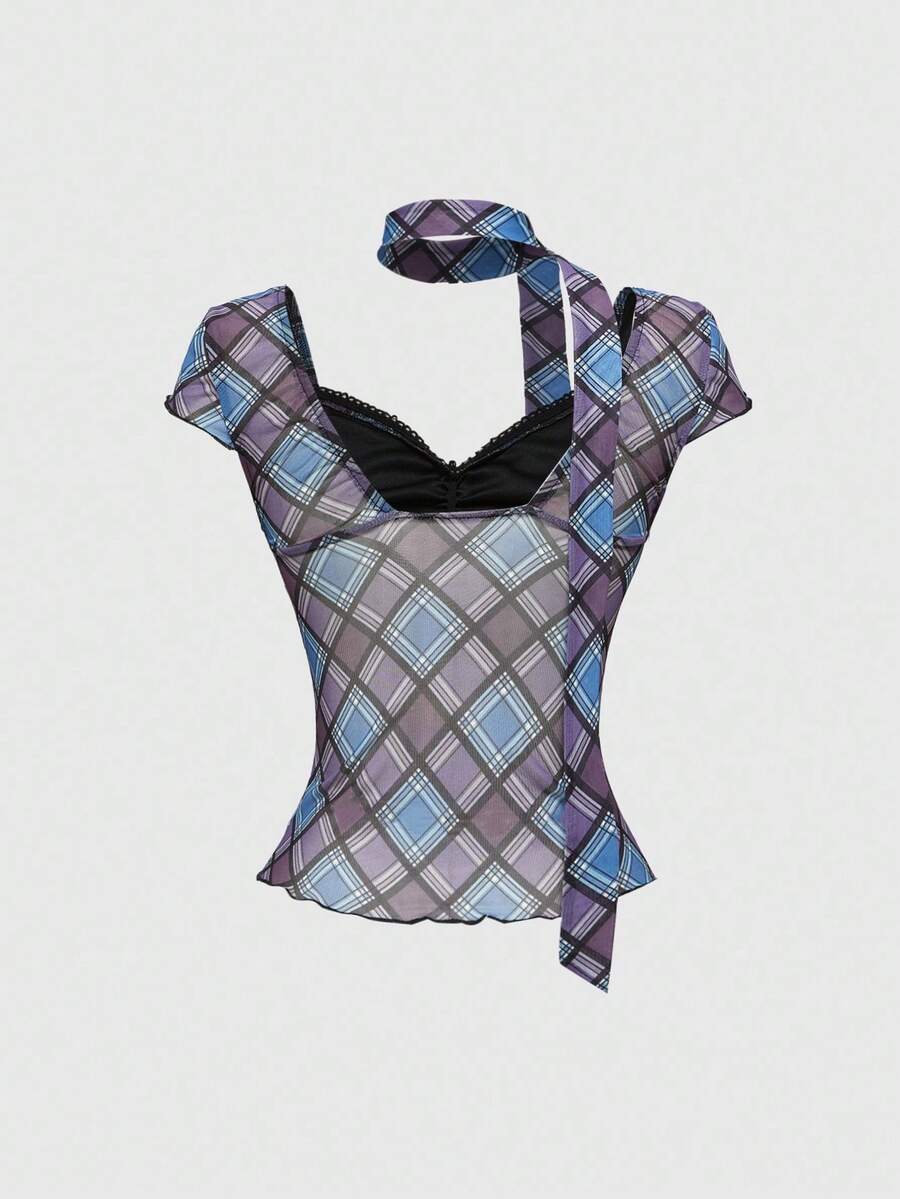 J-Fashion Y2K Style Plaid Bow Decor Sweet Women T-Shirt