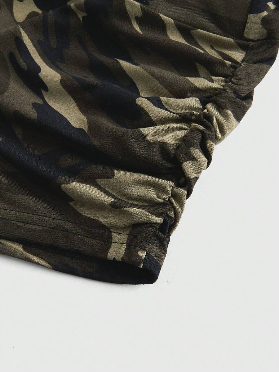 J-Fashion Y2K Style Plus Size Camouflage Ruched Skinny Rhinestone Embellished Shorts