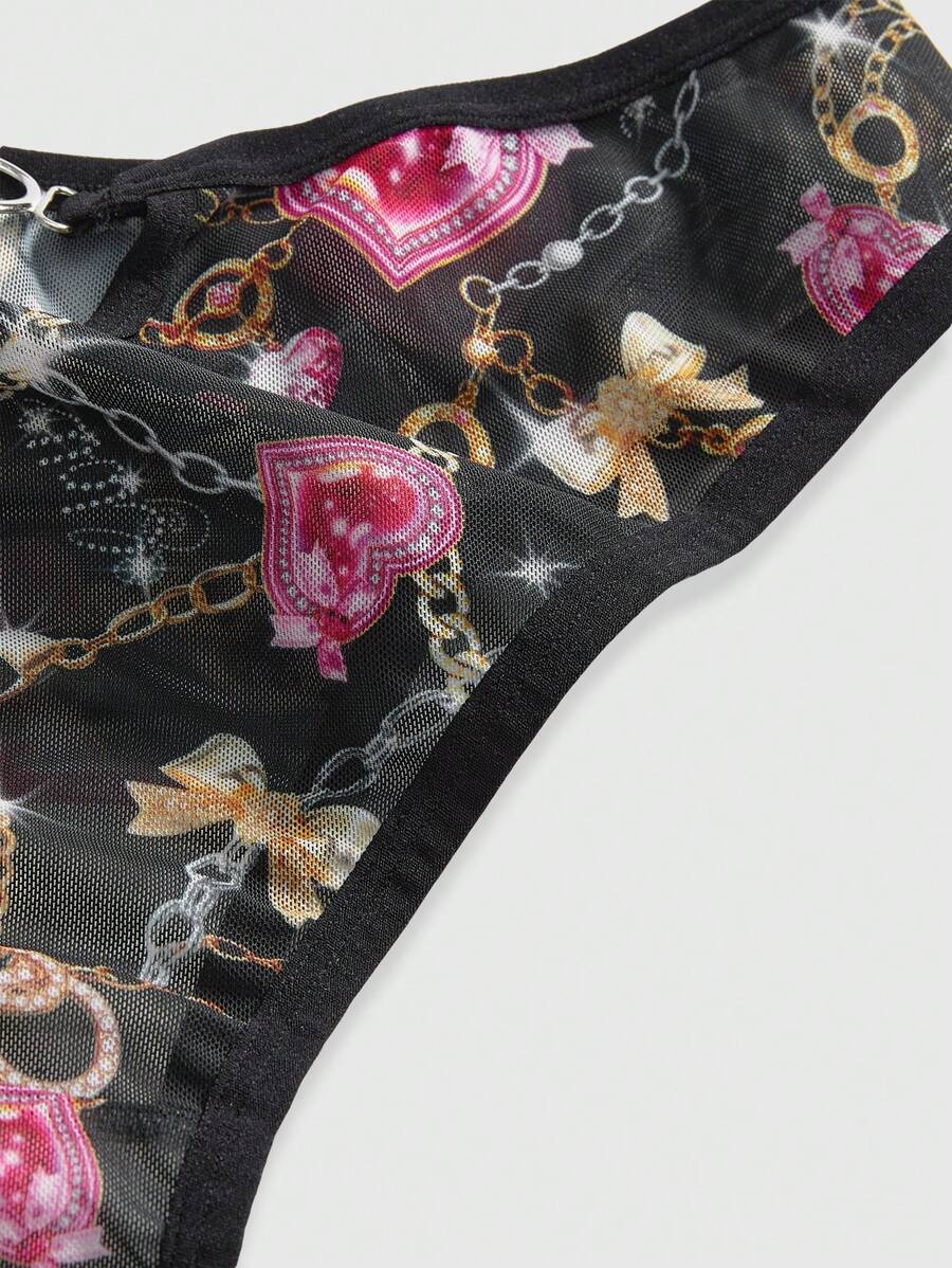 J-Fashion Y2K Subculture Gyaru Diamond Studded Heart Chain Mesh Print Triangle Brief Panties