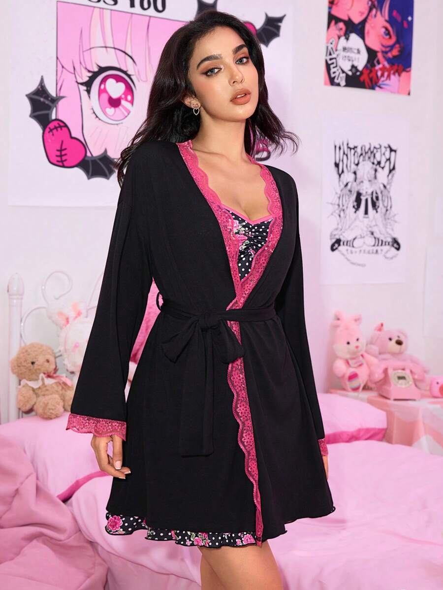 J-Fashion Y2K Subculture Harajuku Style Rose Floral Polka Dot Print Summer Casual Pajama Set