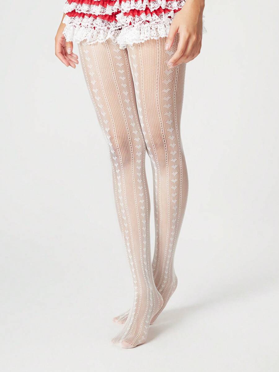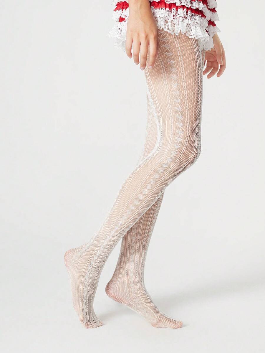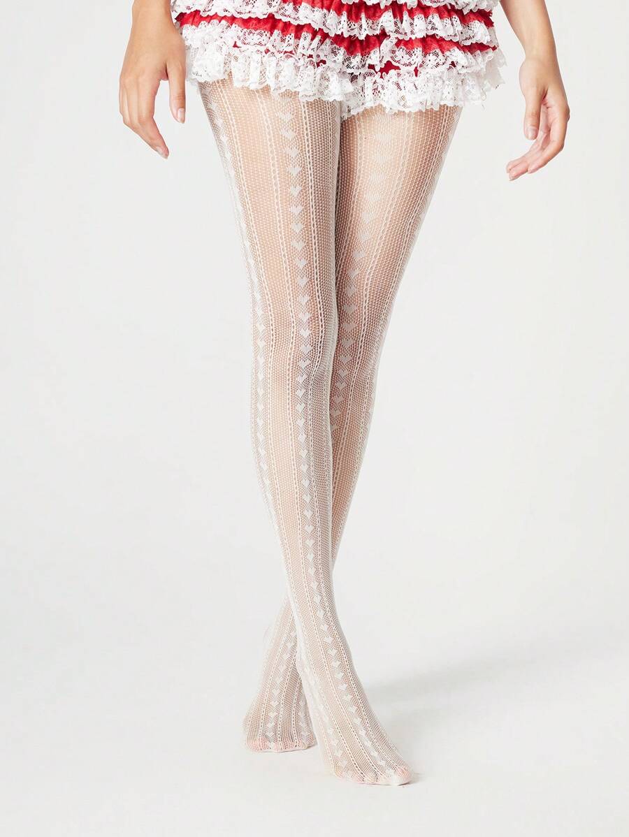 Kawaii 1 Pair Cute Symmetrical Hollow Heart Striped Fishnet Stockings, Sweet Sexy White Sheer Tights, Ultra Thin Elastic Leggings